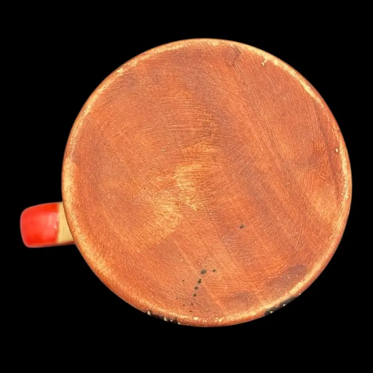 This cup has never been used and is in very good condition. The red glazed portions have crazing due to age, but the watercolor portions are unglazed and have no crazing.