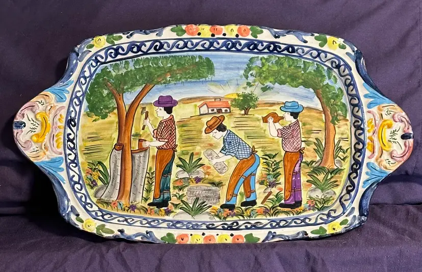 Gorgeous hand painted Olaria Polida E Filho S.P. Corval Portugal tray. 17”L x 10”W No chips or cracks. Offers Accepted