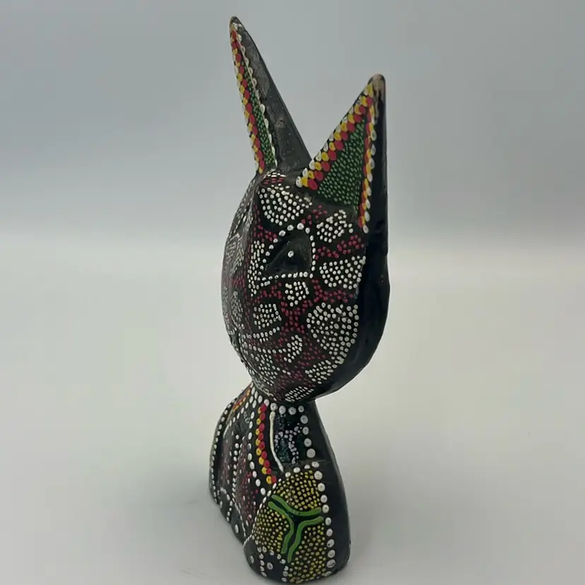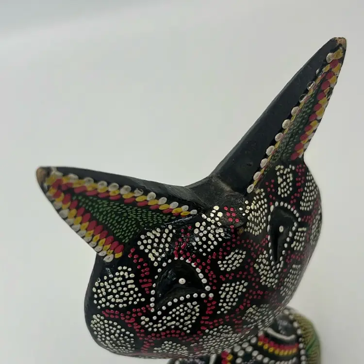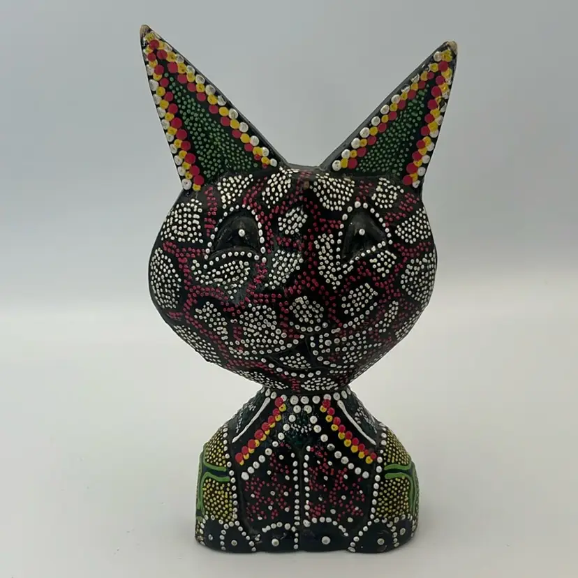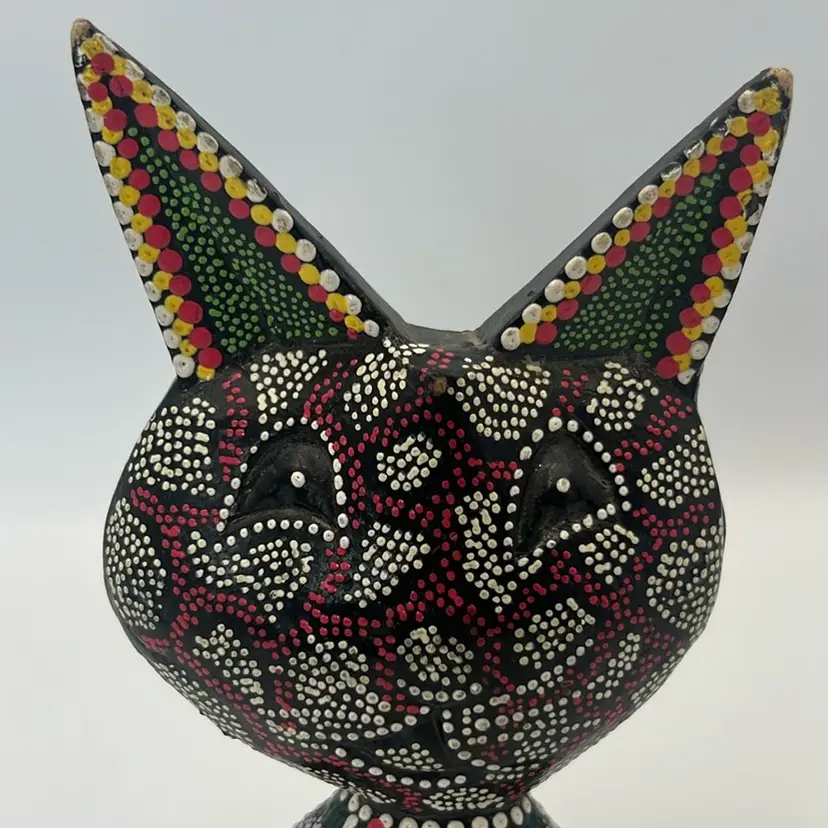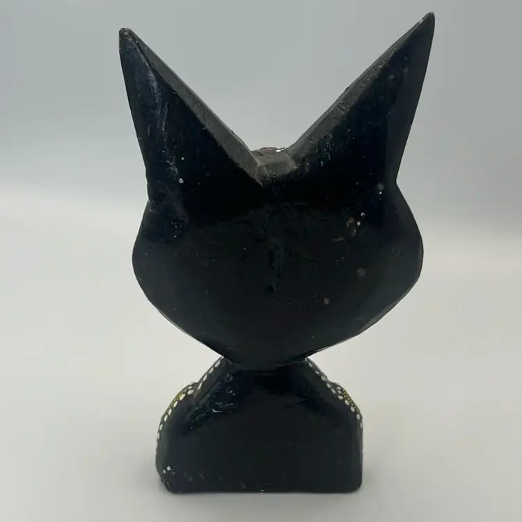 Slightly derpy cat bust - head and shoulders. Colorful paint! Fun for Halloween! Slight wear of paint on top of ears.