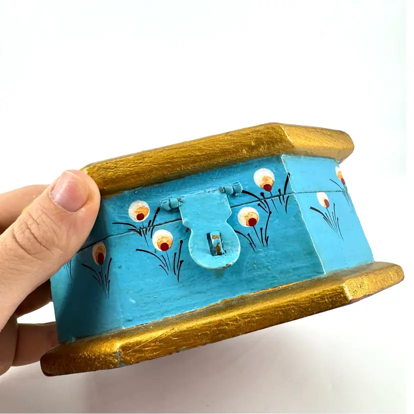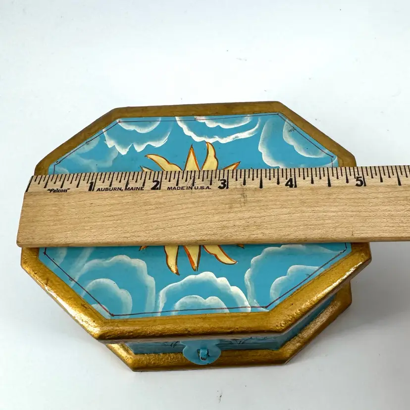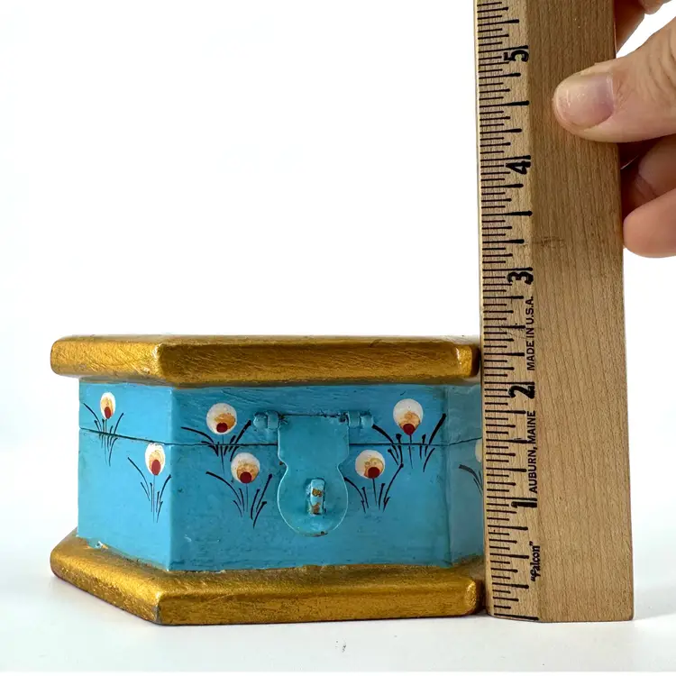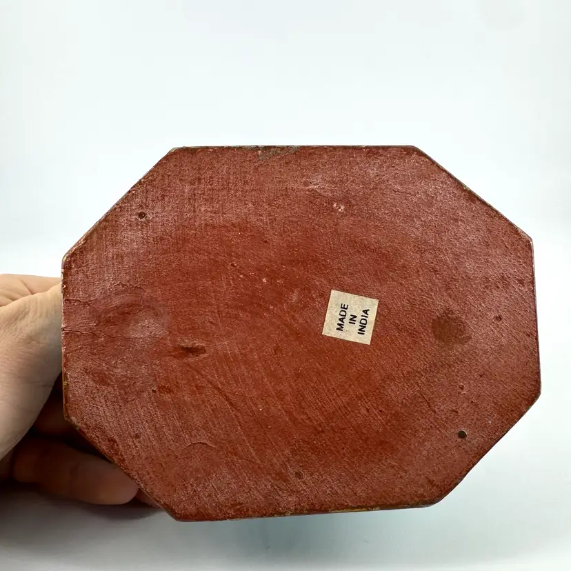 Height is approximately 2.5” Width is approximately 5” No chips or cracks Does have paint ware. Is marked “Made In India”