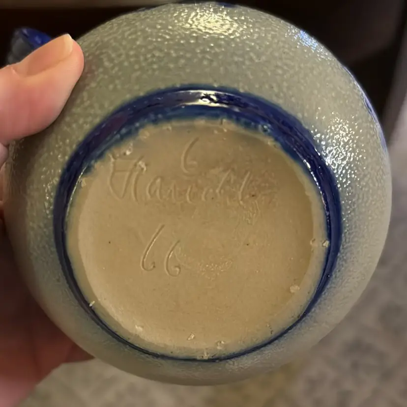Hand-Signed Cobalt Salt-Glazed Jug - 6” tall