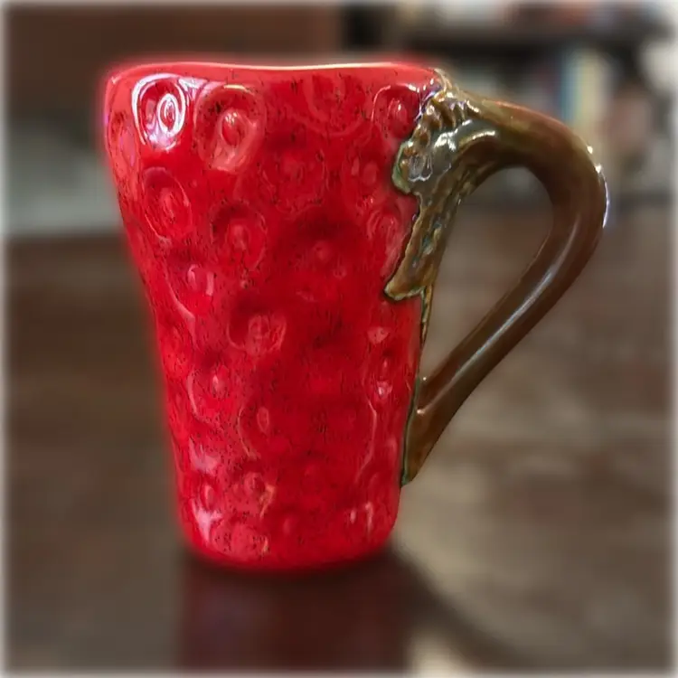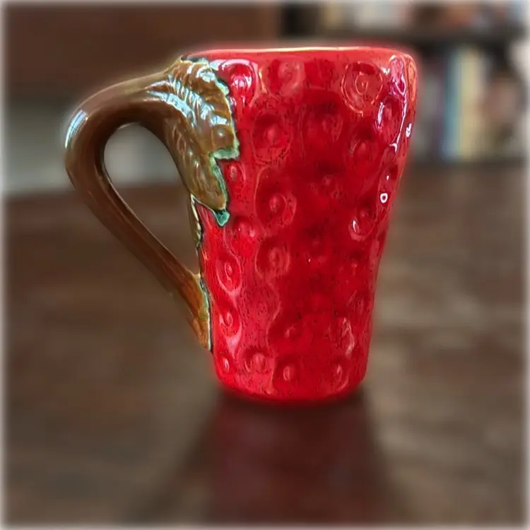 Hand-Signed Hobbyist Strawberry Coffee Mug - 5” tall and 3” in diameter