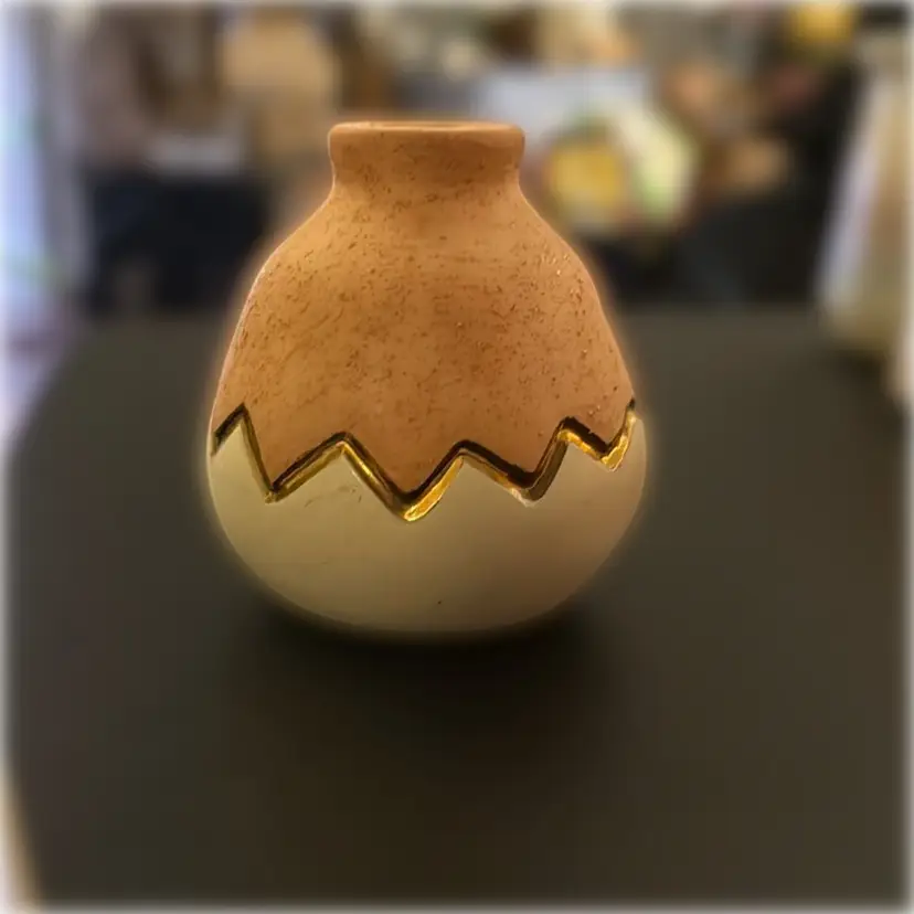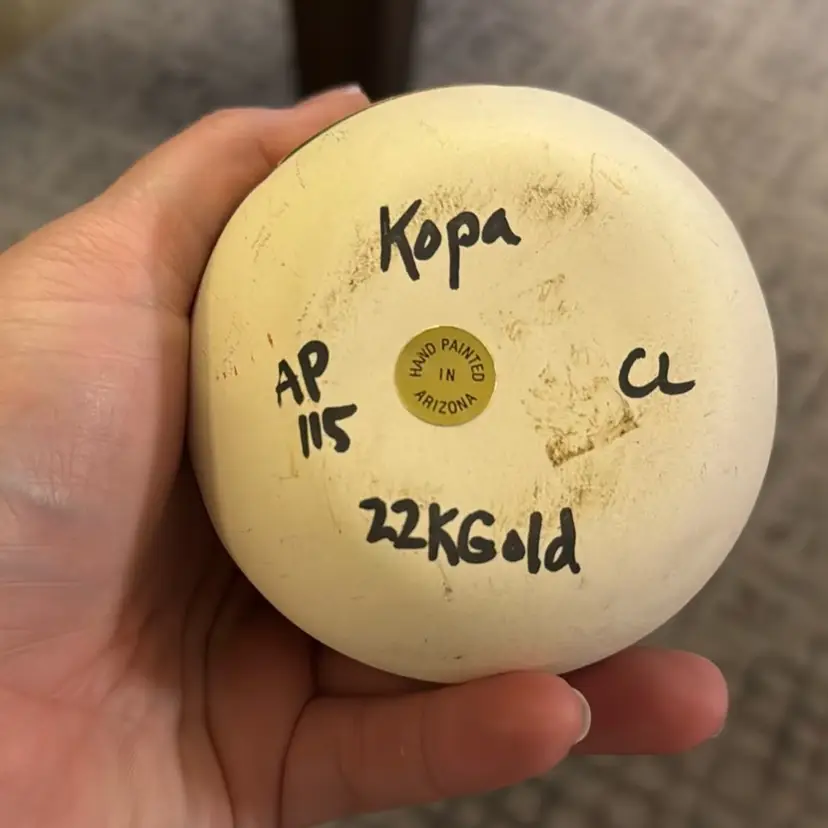 Hand-Signed Kopa Native American Pottery with 22k Gold Details - 3.5” tall