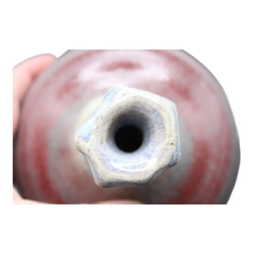 Hand-Thrown Studio Pottery Weed Pot Signed Burgundy & Blue Glaze Vintage 1970s Art Pottery Bud Vase 4 3/4” Tall opening is 1 1/2” and base is 2 1/2”. No chips or cracks.