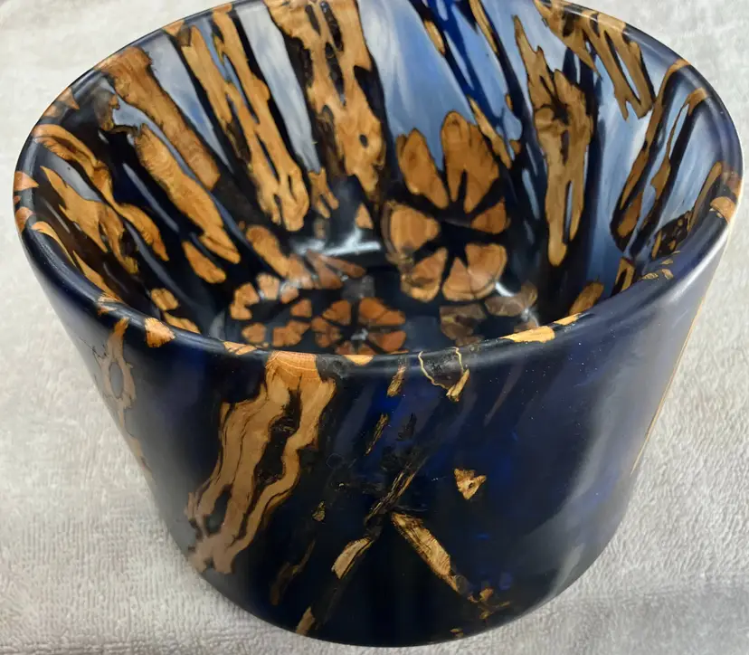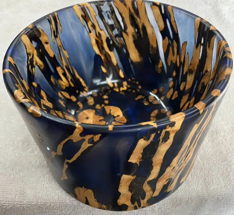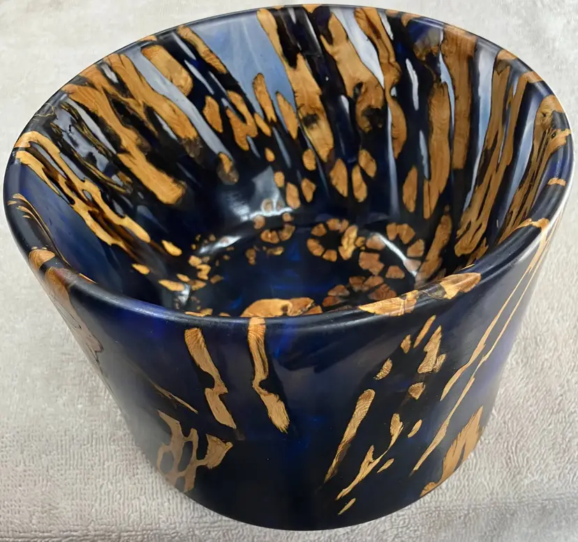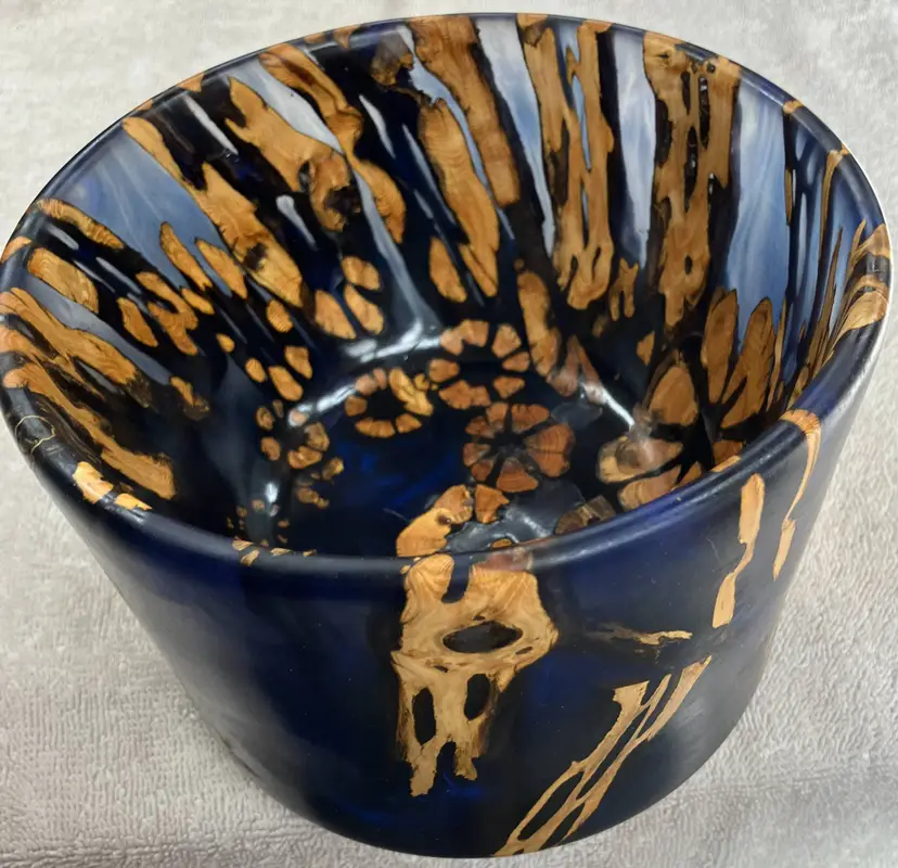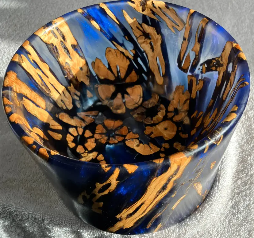 Unique handcrafted bowl made from Cholla Cactus and vibrant blue epoxy. Perfect for adding a touch of nature-inspired art to any space.