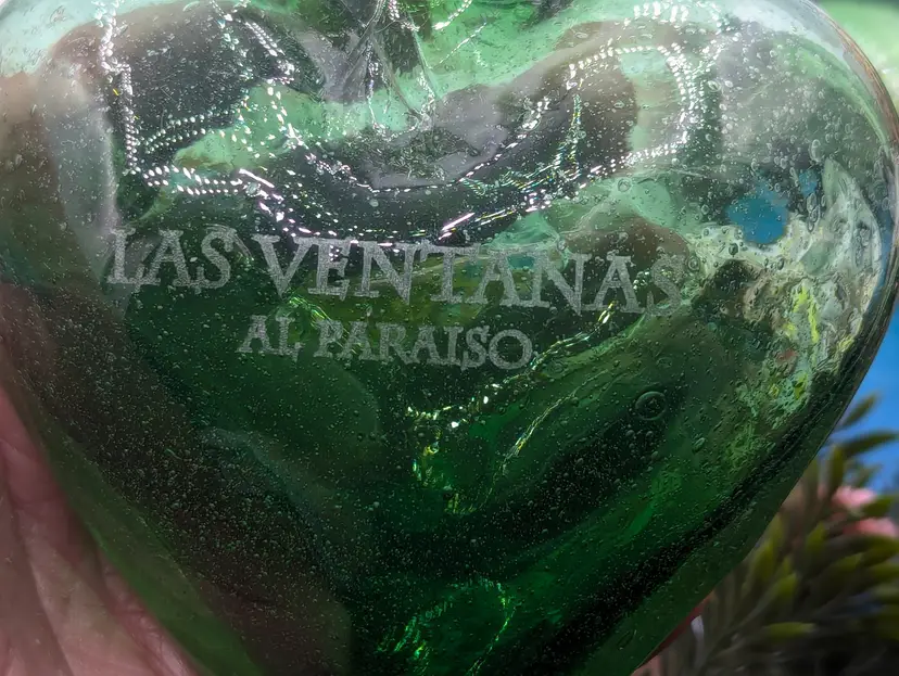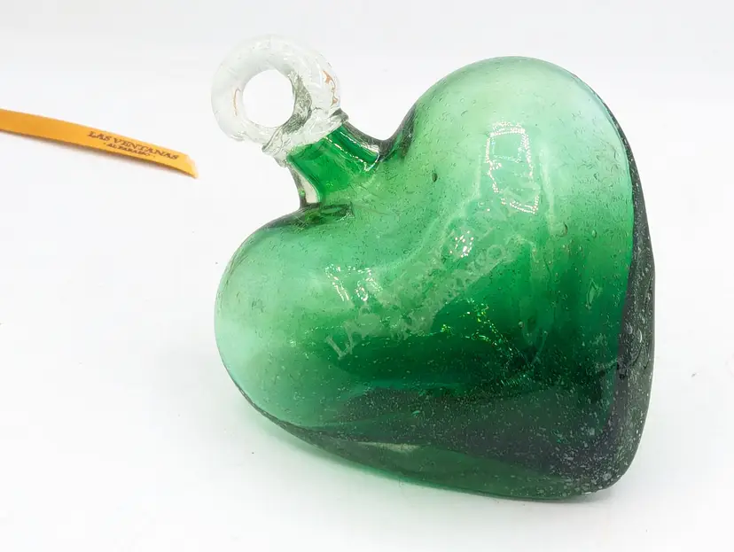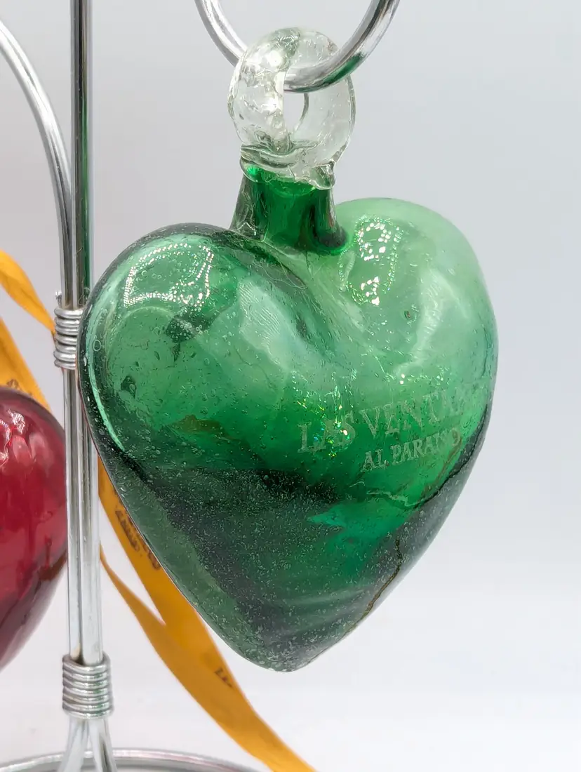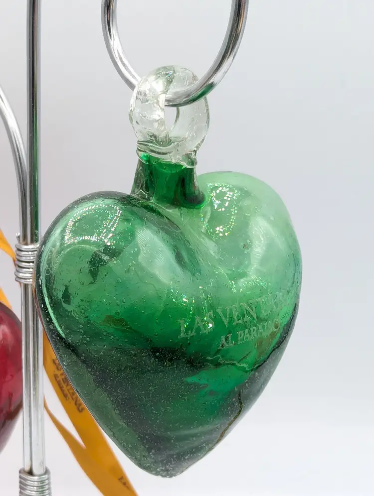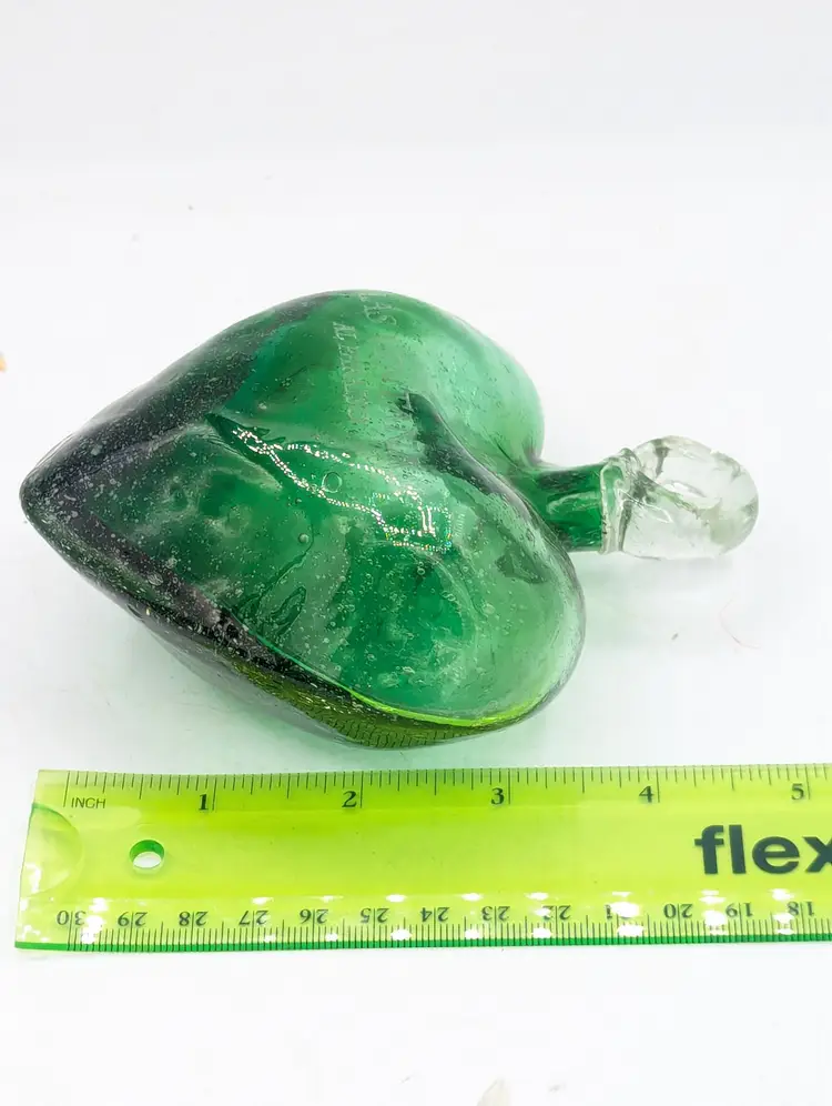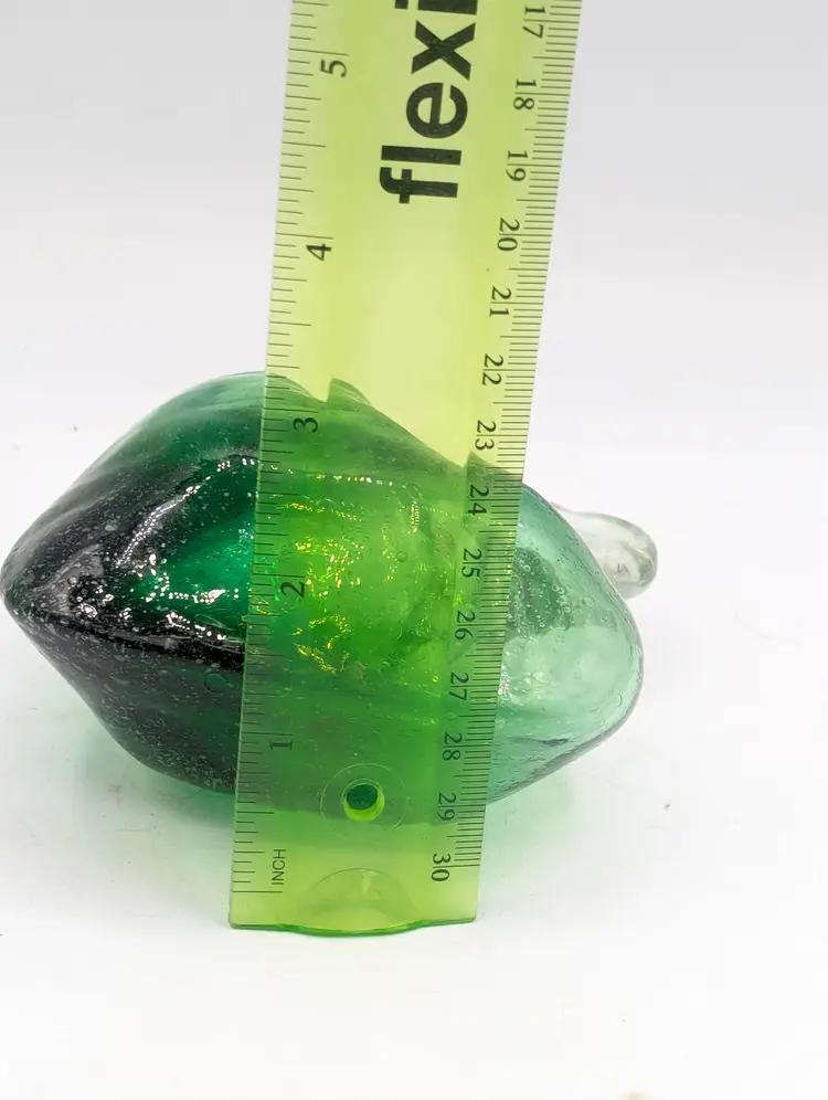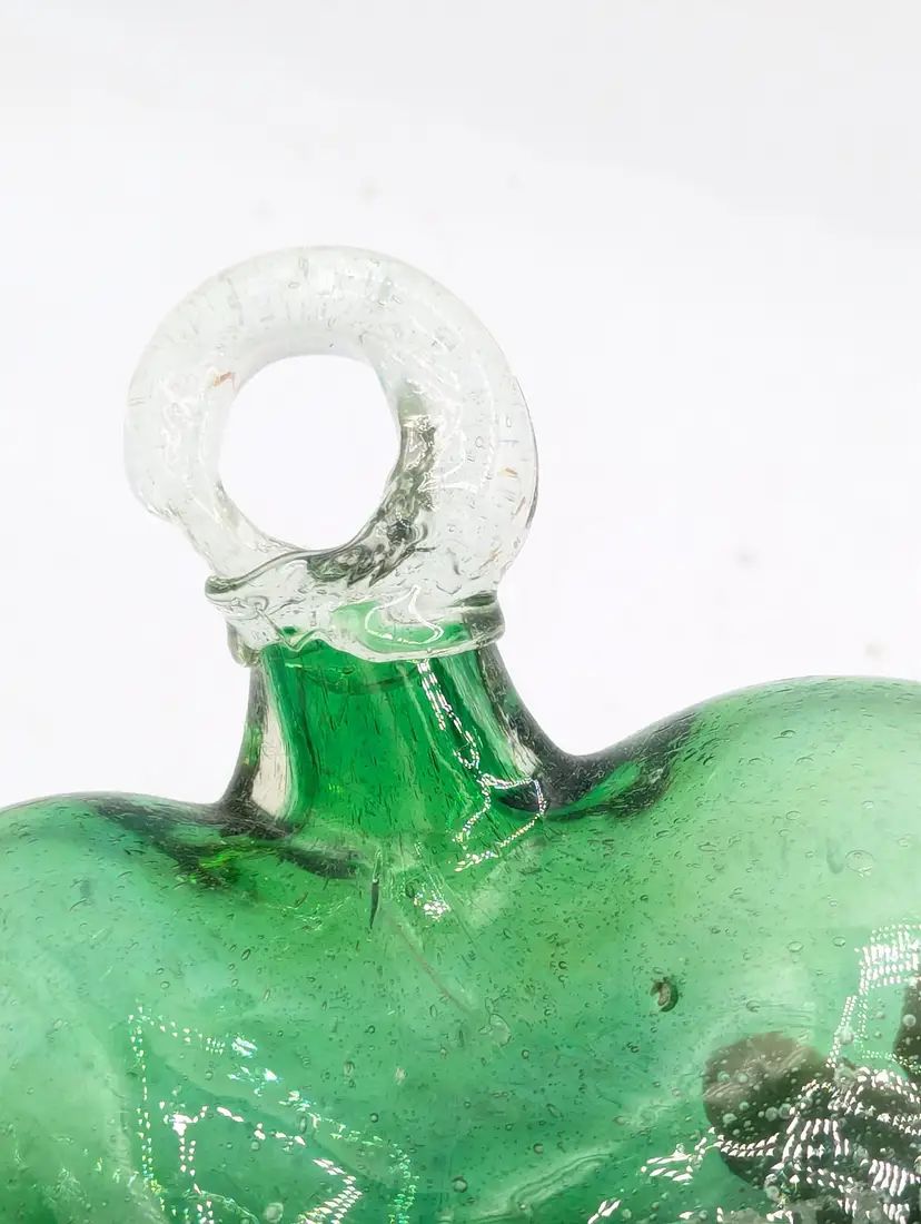 Measures approx. 6" with hanging loop. Beautiful heavy glass that looks stunning in the sunlight. Thousands of tiny bubbles only add to the charm. No chips no cracks and no scratches.