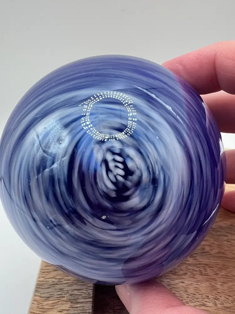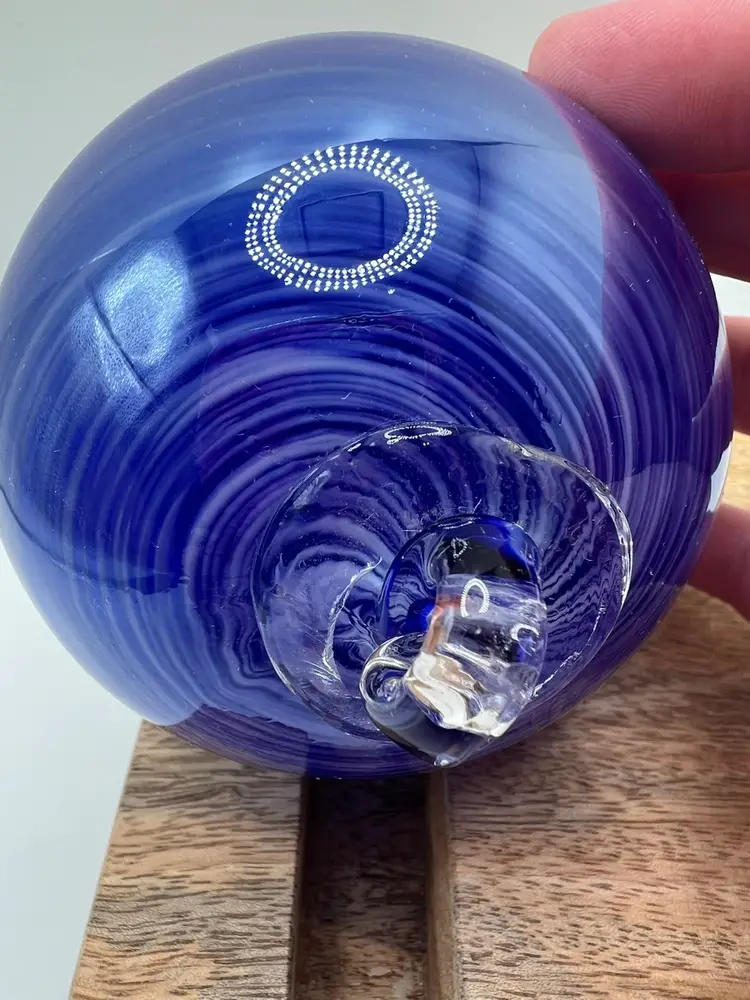 Beautiful, polished handblown art glass orb with hanger.