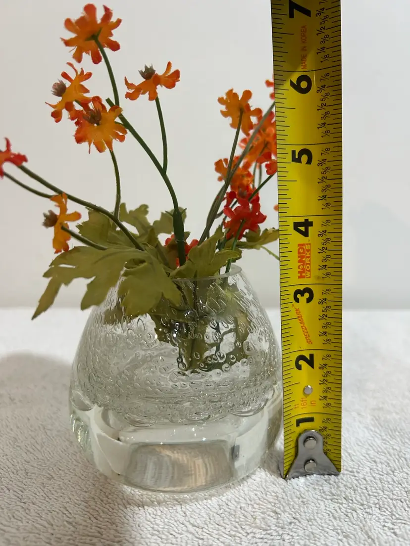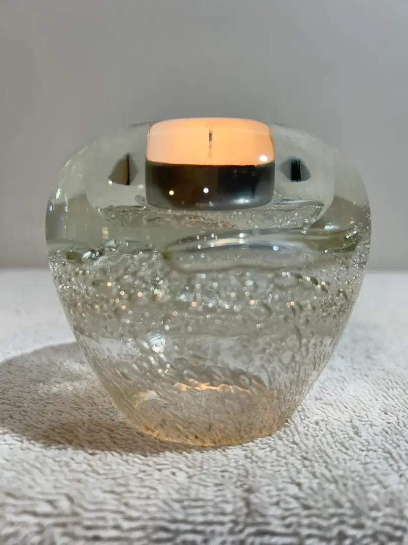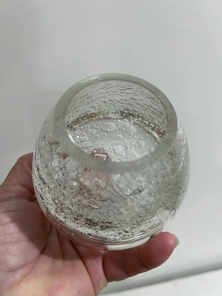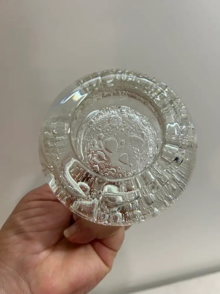The solid Art Glass and dense bubble pattern give it a distinctive, organic appearance. Very appealing and the clear color will complement a variety of spaces. Excellent condition. No wax buildup, chips, cracks or scratches. Smoked pet free home.