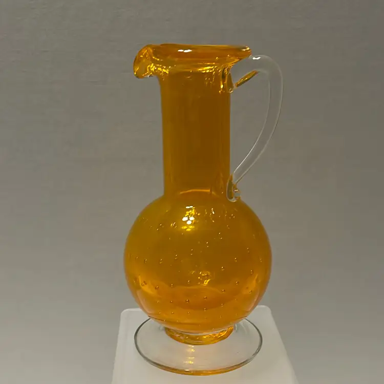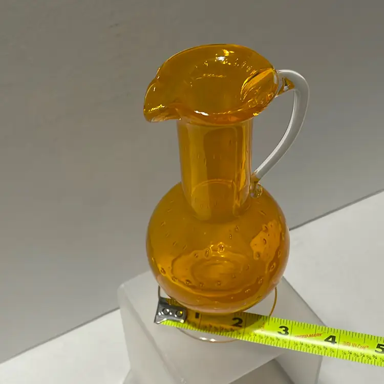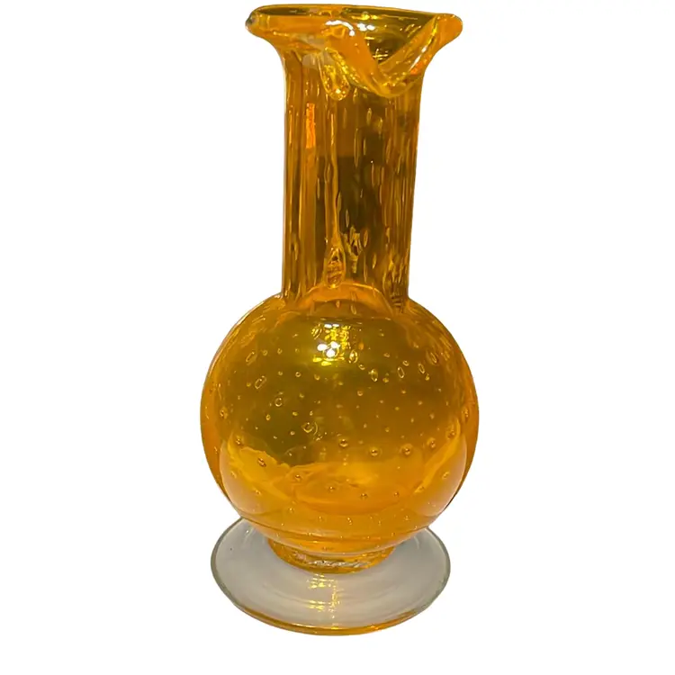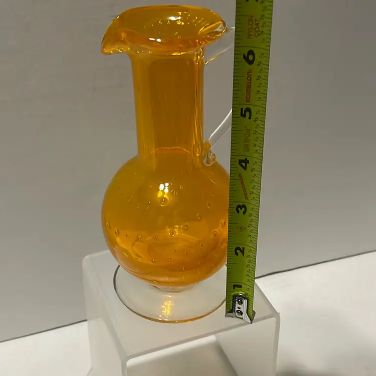 This Orange Glass Pitcher with patterned bubbles. No chips or cracks.