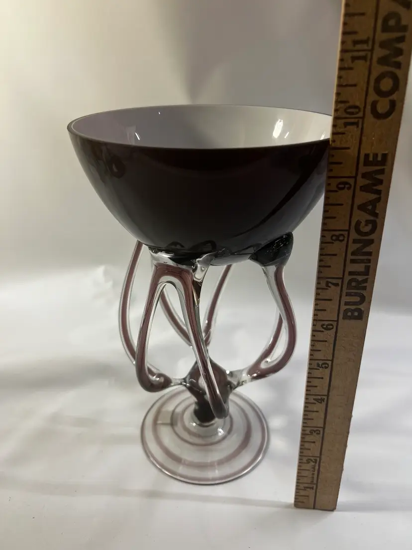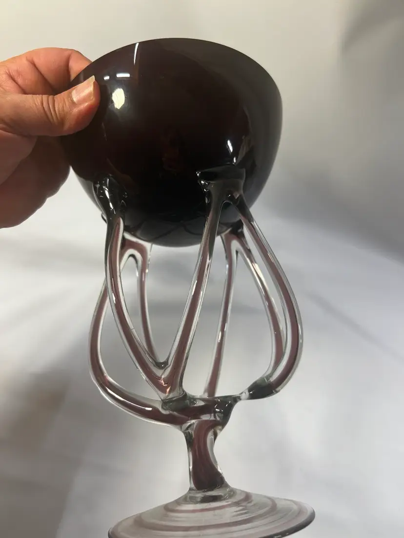 amethyst purlple and clear Jellyfish art glass bowl. Handblown Poland approx. 9.5”