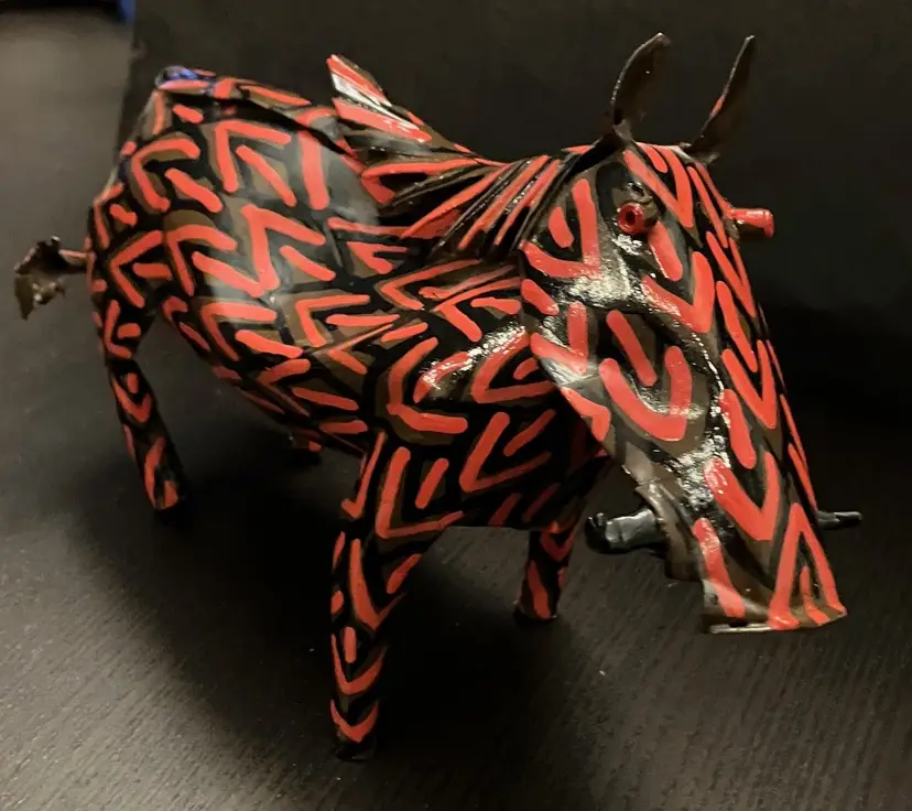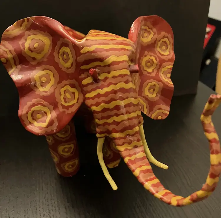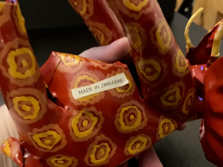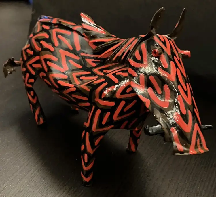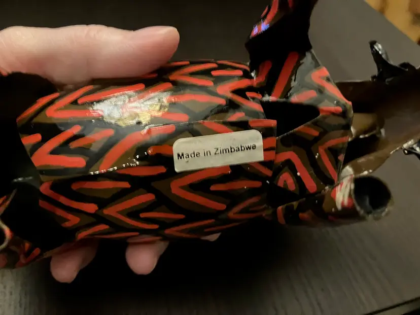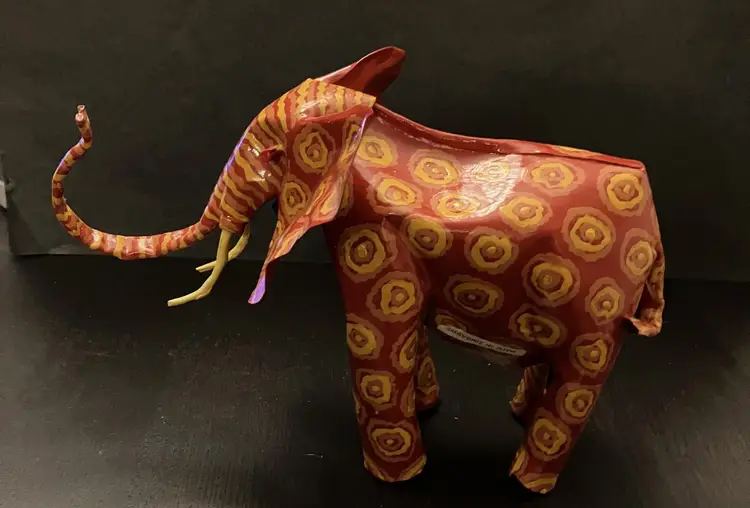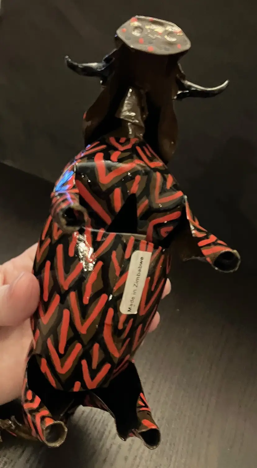 Usually made from recycled metal, likely tin or aluminum. Made in Zimbabwe. Painted in vibrant colors. No conditions issues. Warthog is 8" long and 5" tall. Elephant is 9" long and about 6" tall. If you would like to purchase only 1 of these animals, please contact me.