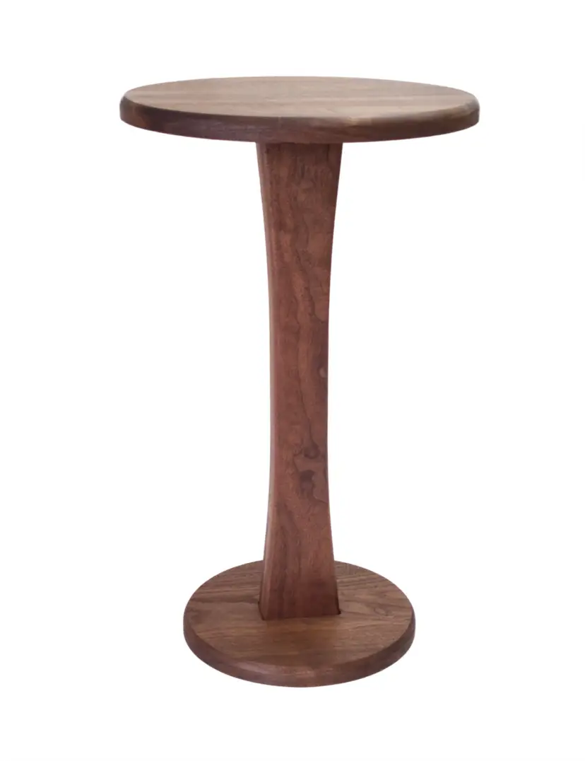 Small accent table made entirely of solid black walnut. Perfect for morning coffee, books, or for use as a plant stand. Finished with Fiddes hardwax oil. Each table is hand-fitted before shipment to ensure proper fitment. Pre-drilled holes make assembly simple and easy with the included screws and screwdriver. Primary photo is of 12" round top, 20" tall, with a 9" diameter base. Dimensions can be customized at your request.