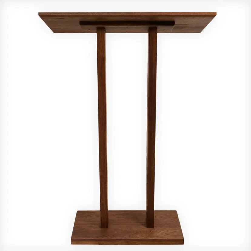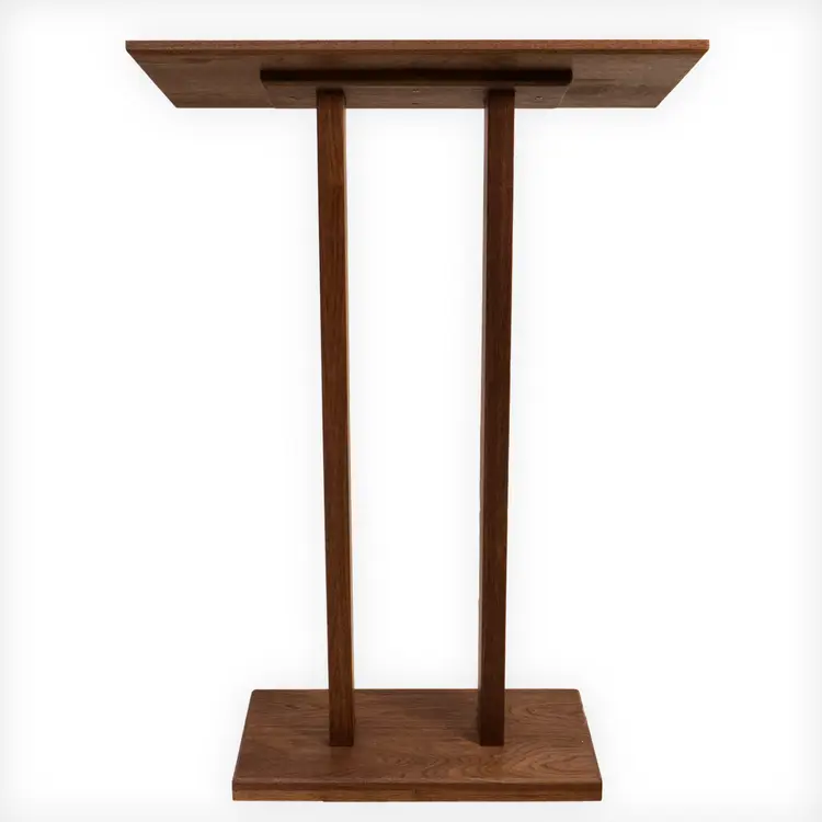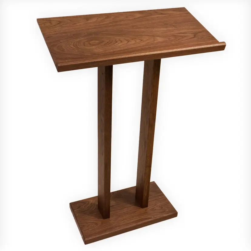 Lectern for business presentations, church pulpit, or book display, made entirely of solid walnut. Sturdy construction, hand-crafted and hand-finished. Finished with Fiddes hardwax oil. Top measures 30" x 15". 42" tall at the front edge and 45" tall at the back. Contact me if you would like a custom size. Ships flat but assembles quickly with the included screws and pre-drilled holes.