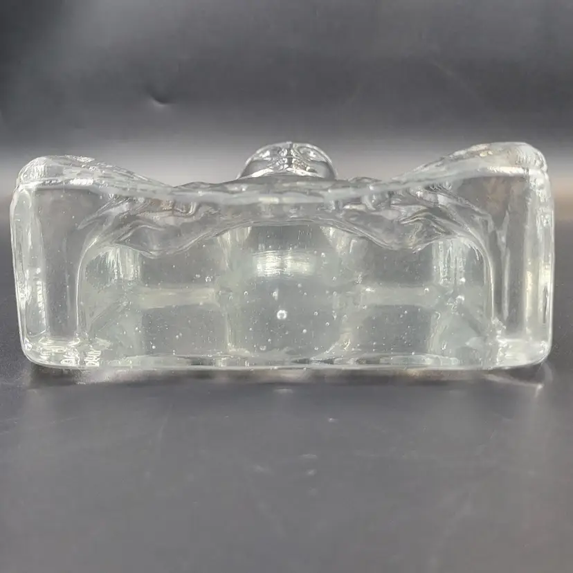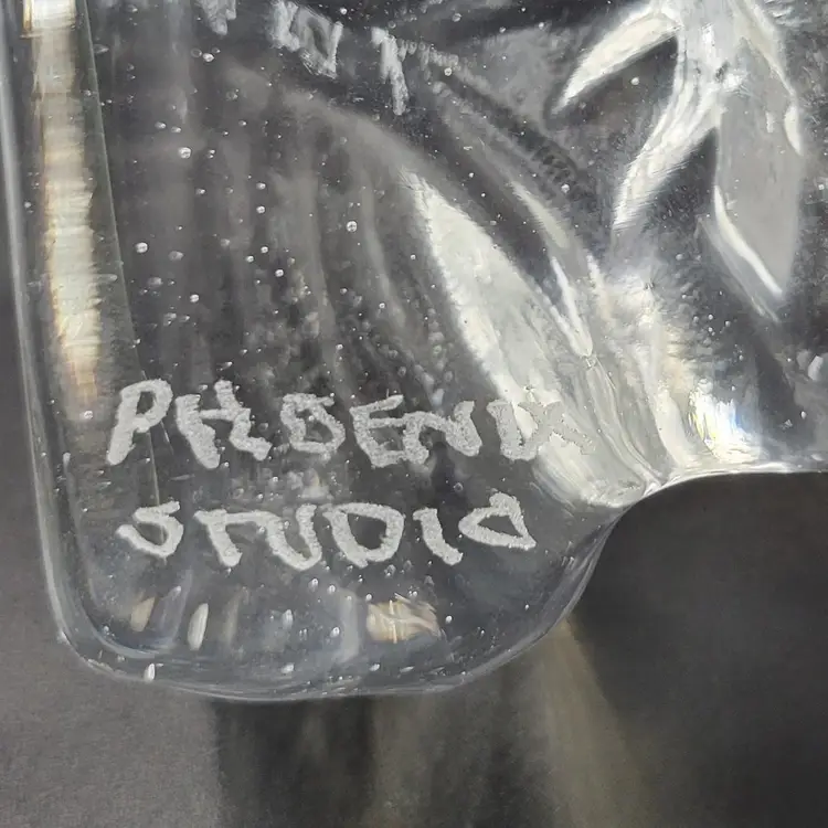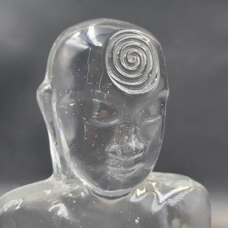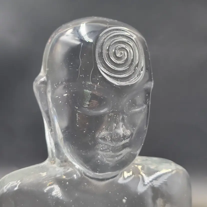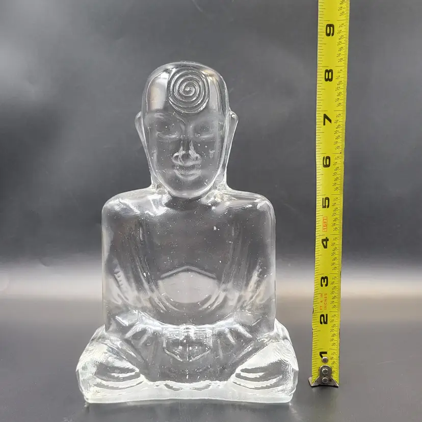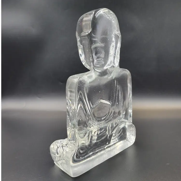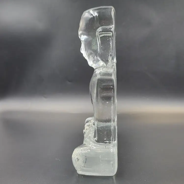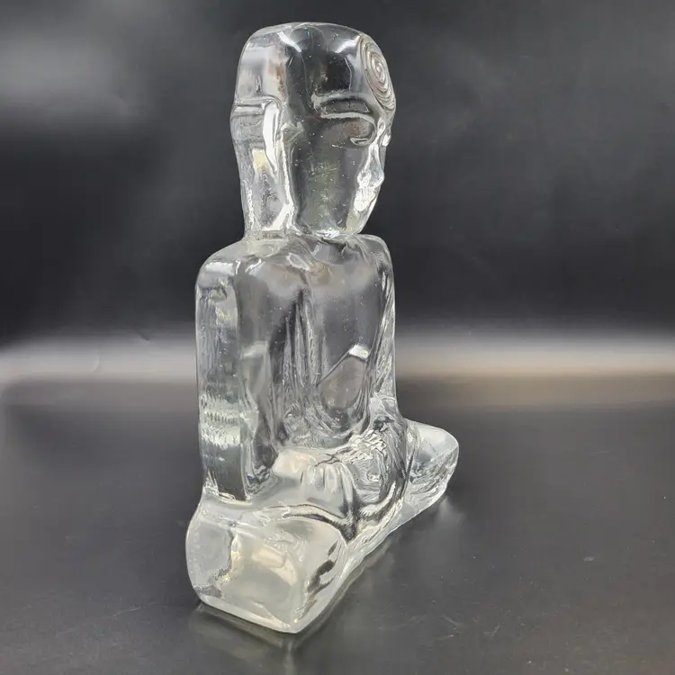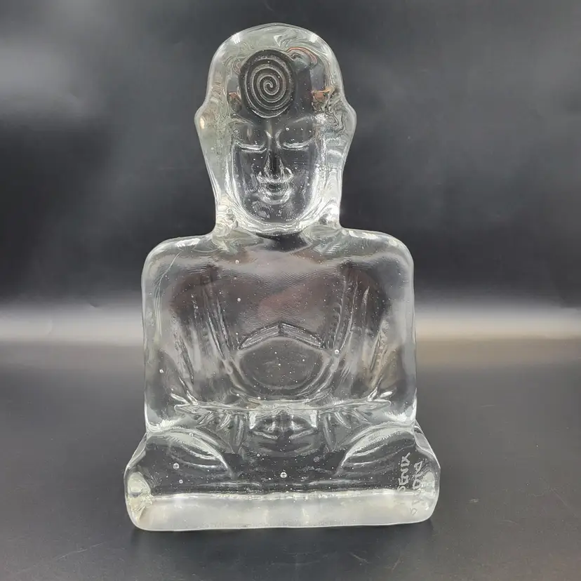 Susan Gott has worked in Glass for 30 years ans specializes in cast Glass. Her glass studio is in Tampa Florida. This Buddha bookend is a made in a clear glass. It measures about 8.25" tall and 5.25" wide and almost 2.25" deep. She signed this piece on the back (see photos). There are no chips or cracks. There are bubbles in the glass (see photos).