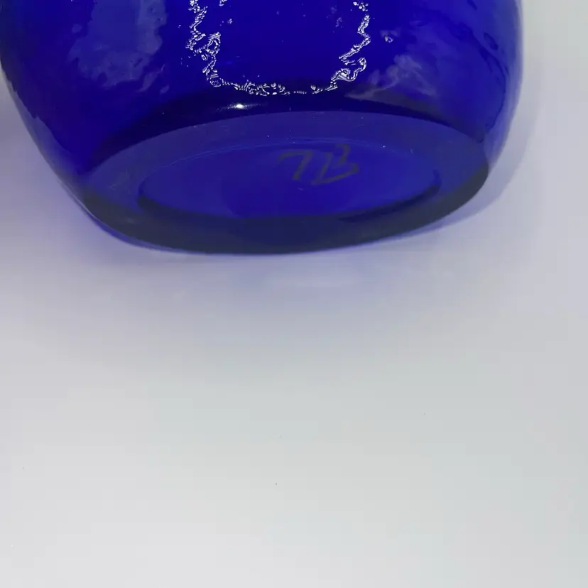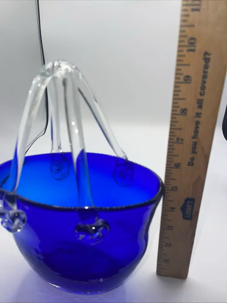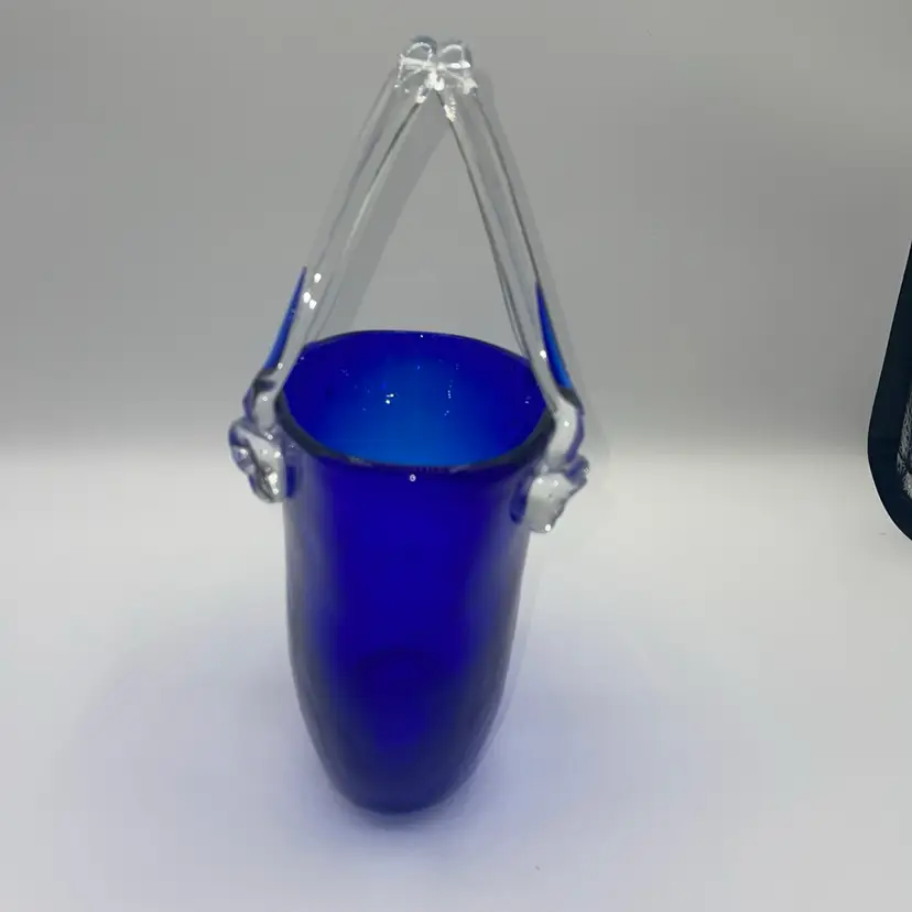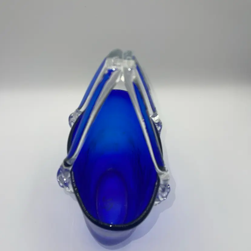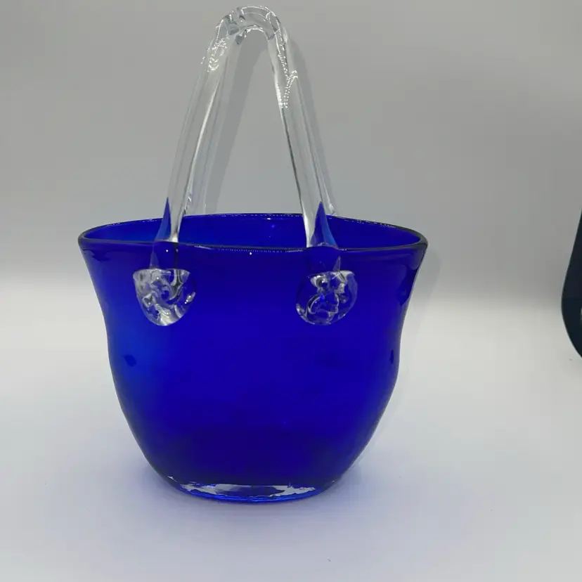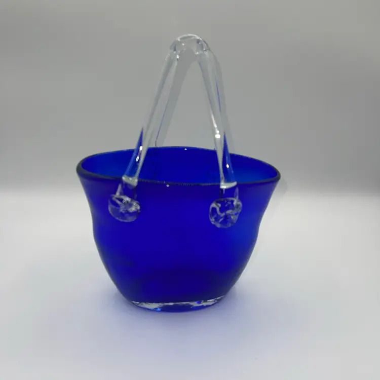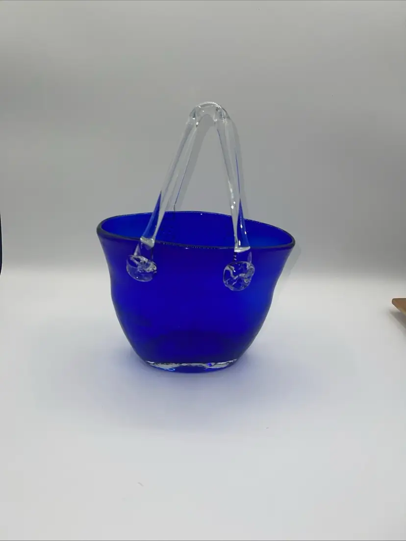 Handcrafted Cobalt Blue Glass Basket/purse With Clear Handle 9.5” x7”