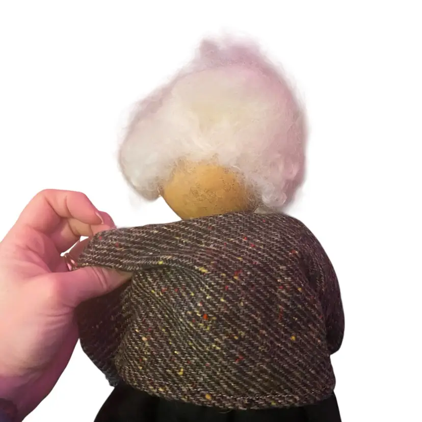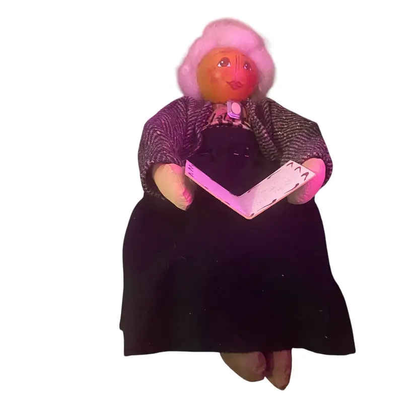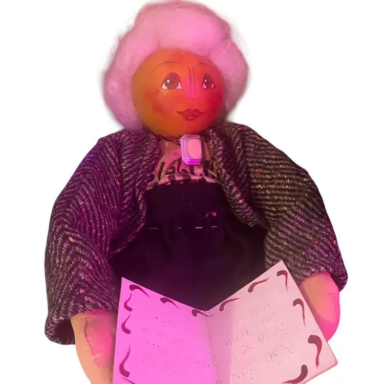handcrafted collectible doll, similar to vintage "Granny" figures made by independent artisans like Mildred Davis or Williams Studio