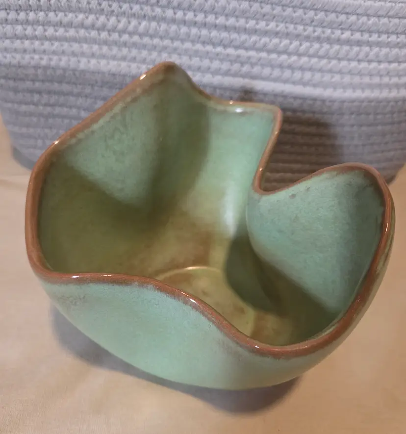 Add a splash of artistry to your space with this handcrafted green ceramic bowl. Its unique wave design makes it perfect for holding small treasures or as a standalone decorative piece.