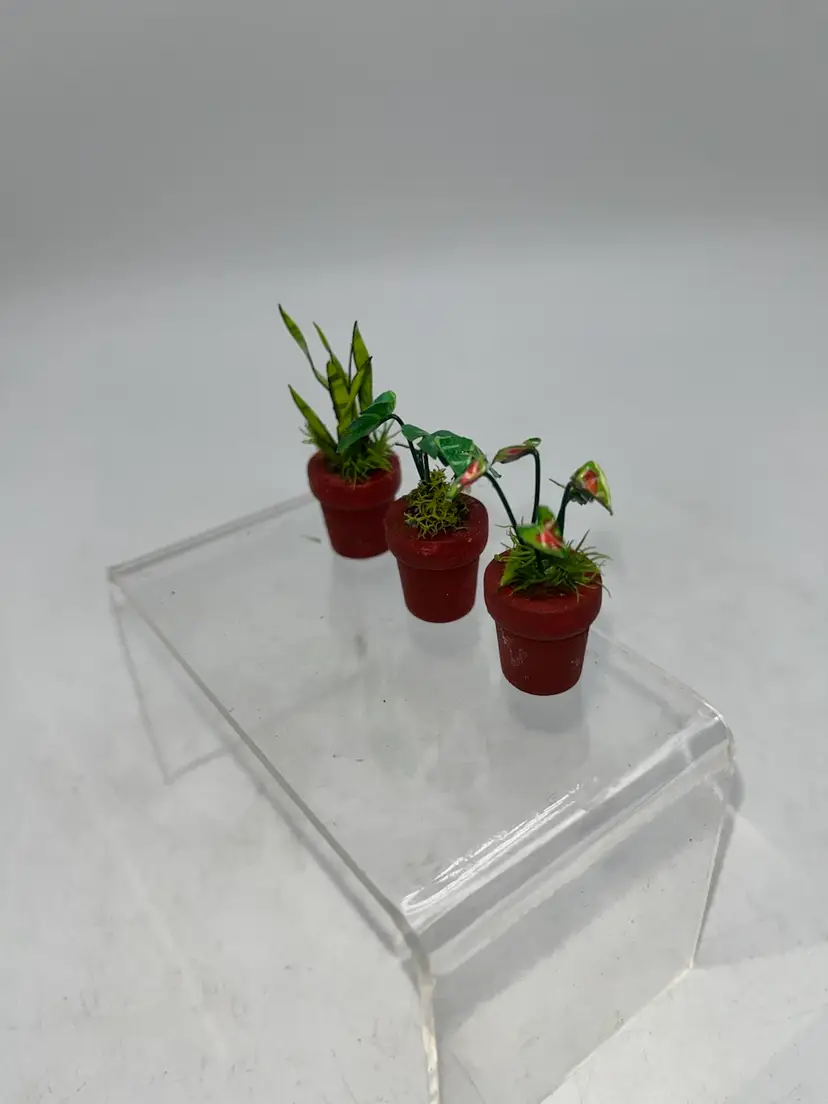 Handcrafted by me. Each leaf is hand cut colored . They are planted in a wood planter apx 1” you get all 3