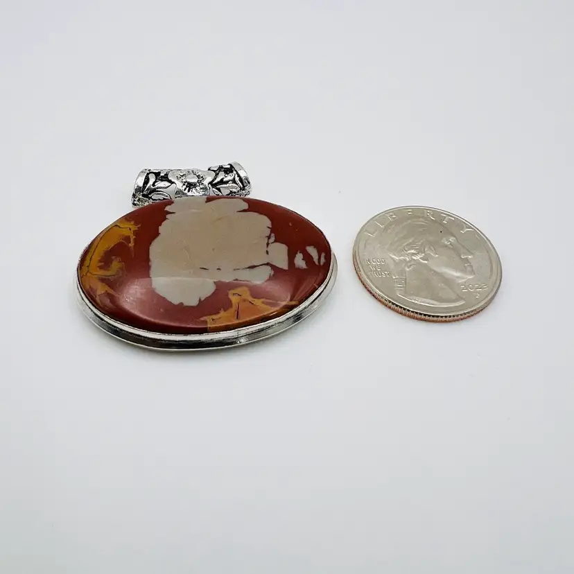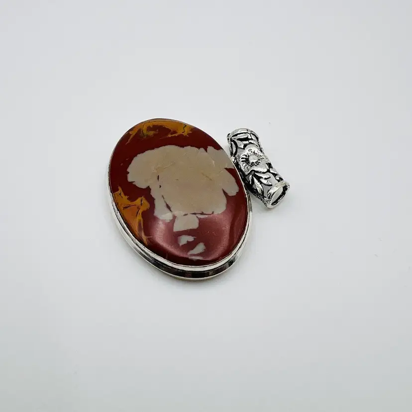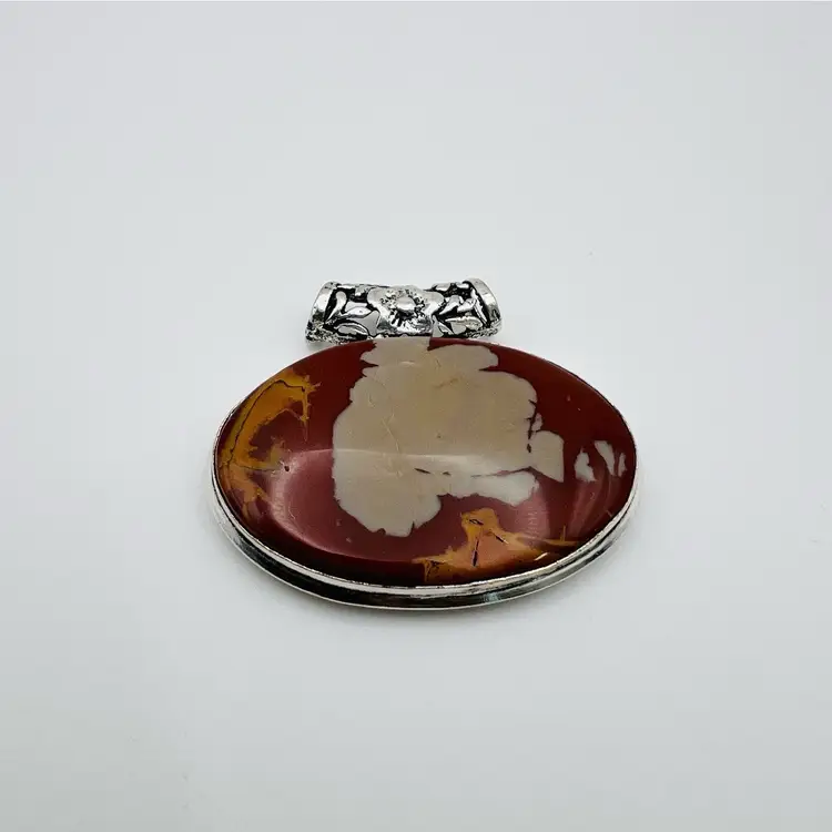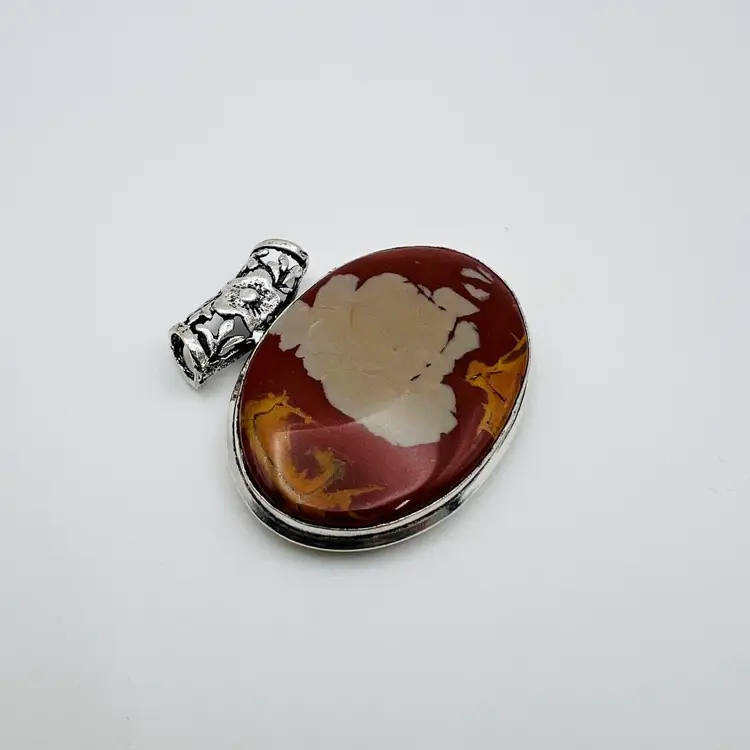 Radiate effortless elegance with this hand-crafted Noreena Jasper pendant, set in a sterling silver–plated copper base for lasting beauty. Each gemstone reveals striking patterns of red, mustard, and grey — no two are ever the same.