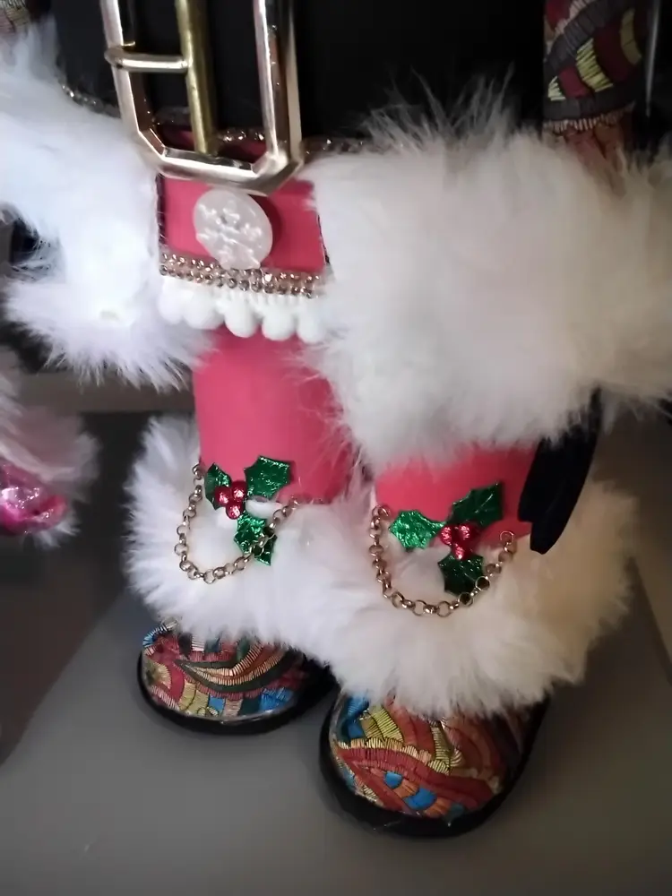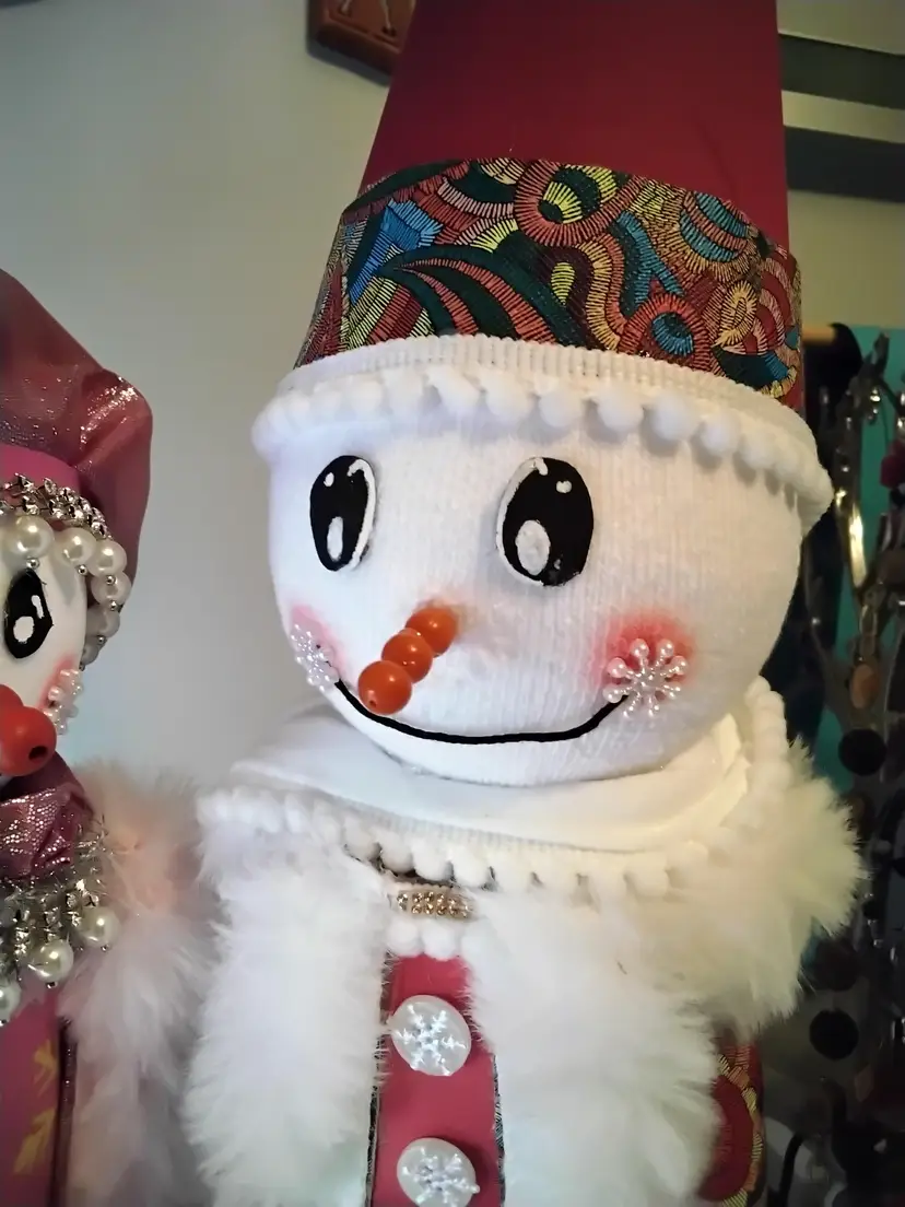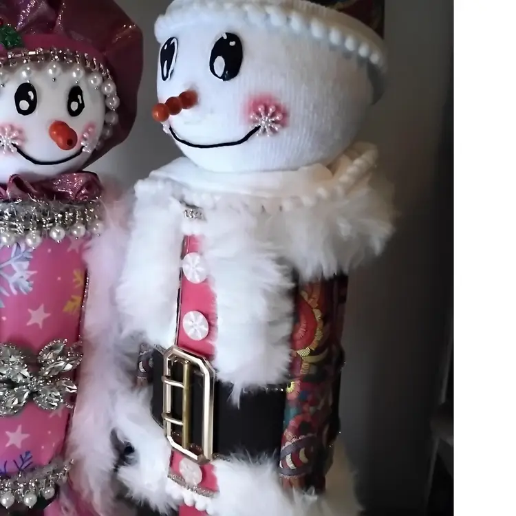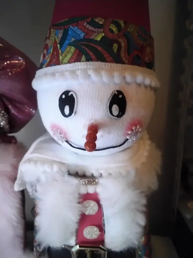 Charming handcrafted snowman santa dressed in festive attire with delightful details. Perfect for adding a whimsical touch to your holiday decor.
