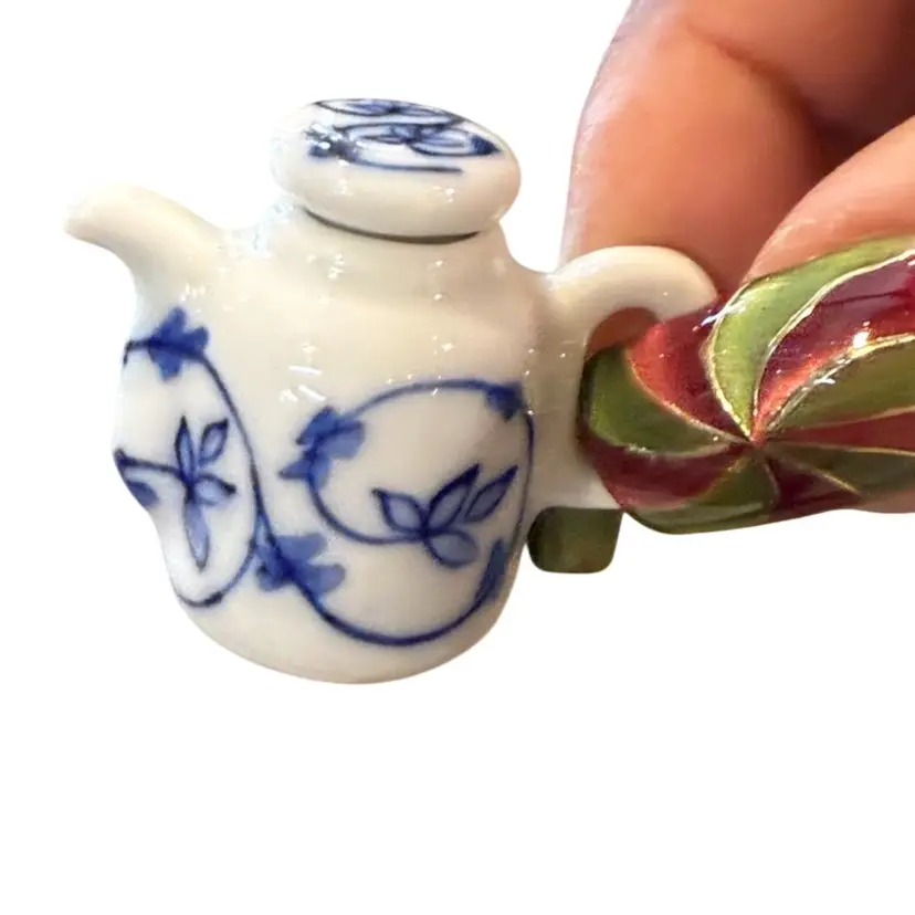 Handcrafted Thailand Blue White Porcelain Footed Flower Leaves Vintage Mini Tea Set
