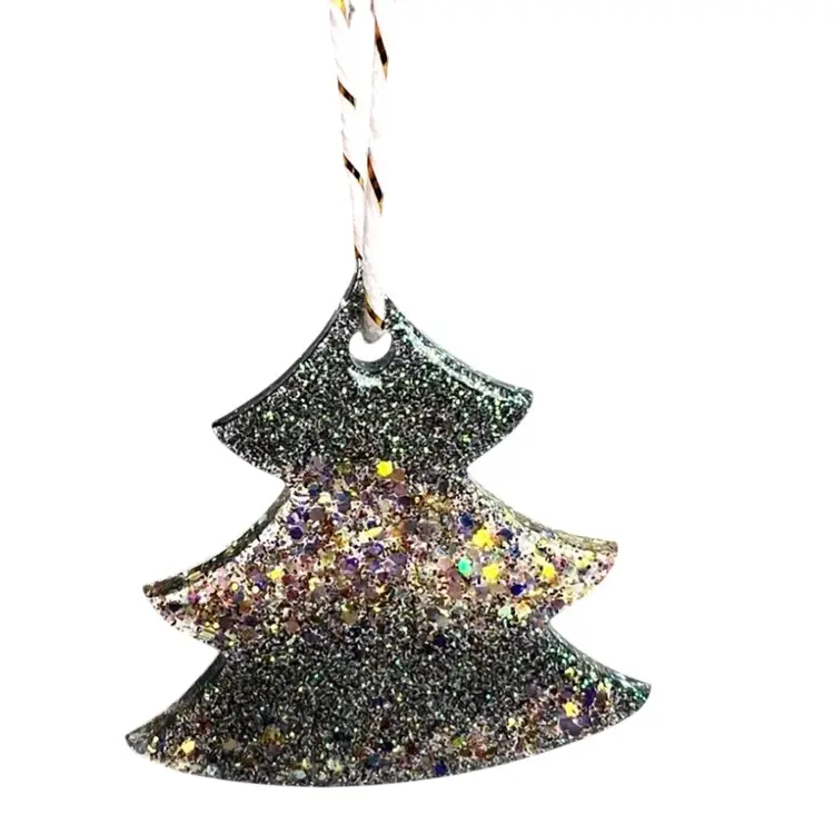 Handmade by me ๐ซถ Gold and green glitter Christmas Pine Tree resin ornament. Comes with ribbon! 1-3/4โ x 1-3/4โ x 1/8โ