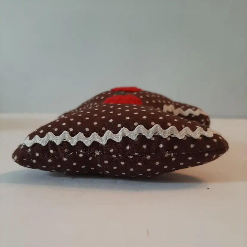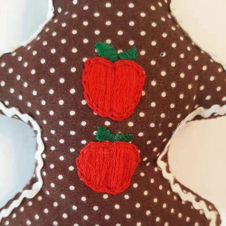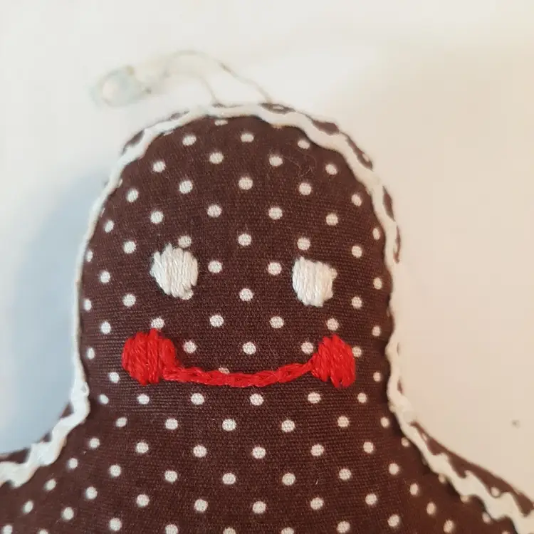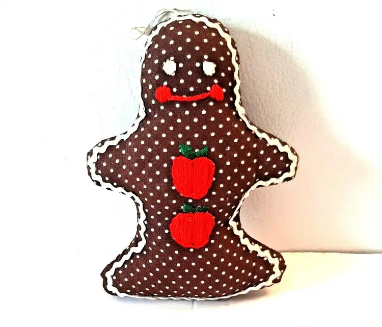 – Features: Embroidered, Vintage – Number of Items: 1 – Department: Adult – Pattern: Polka Dot – Time Period Manufactured: 1980-1989 – Production Technique: Sewn – Subject: Gingerbread – Occasion: Christmas – Vintage: Yes – Size: Medium – Country/Region of Manufacture: United States – Material: Cotton – Year Manufactured: 1970 – Shape: Assymetrical – Character: Gingerbread Man – Brand: Handmade – Antique: No – Color: Brown – Set Includes: Ornament – Theme: Christmas – Type: Ornament