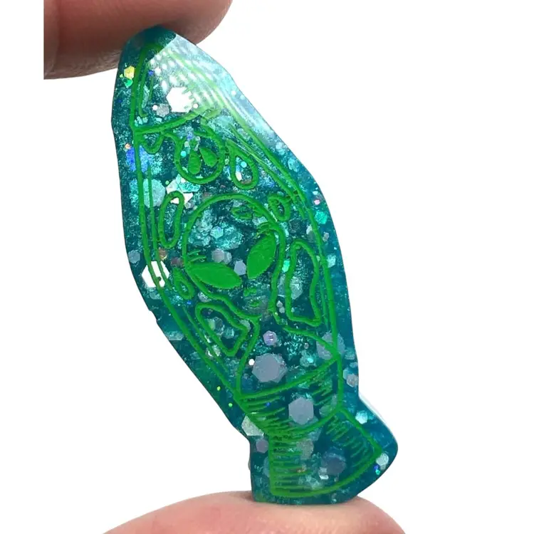 Handmade by me 🫶 Etched Green Alien 👽 in Blue Lava Lamp Resin Magnet 1-3/4” x 3/4” x 3/16”