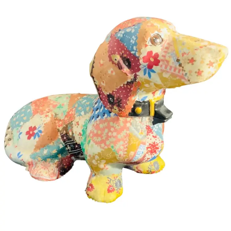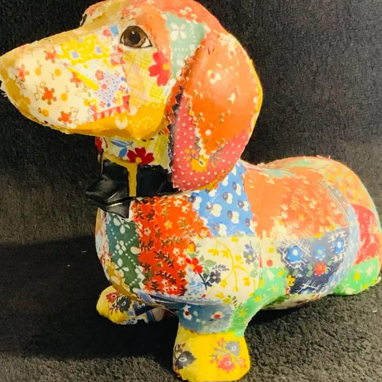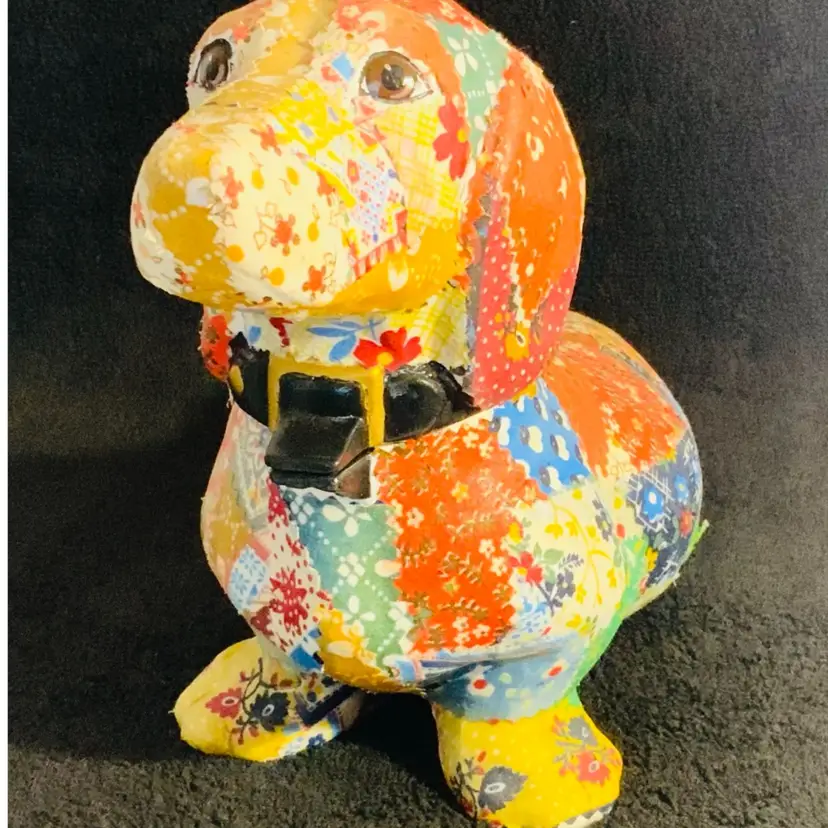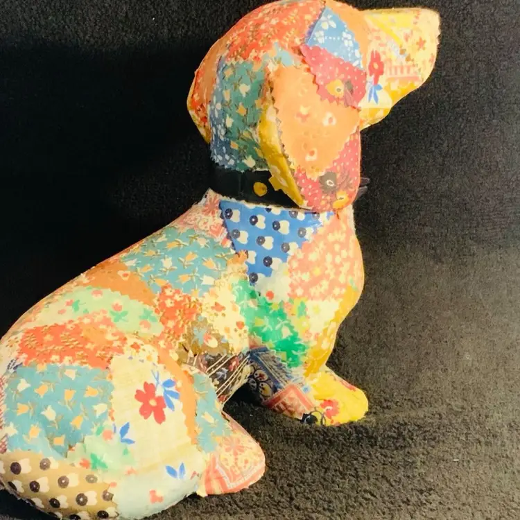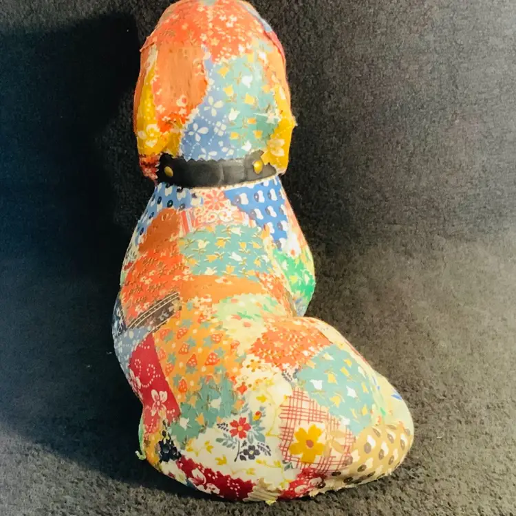 Adorable fabric covered puppy figurine. Would look great by your door. Please review photos to see condition. Super cute.