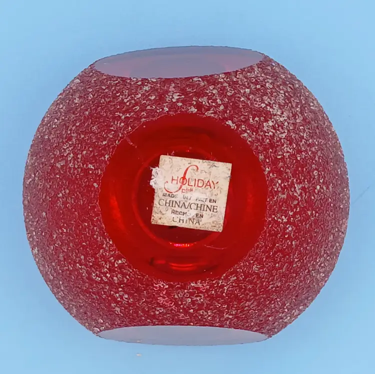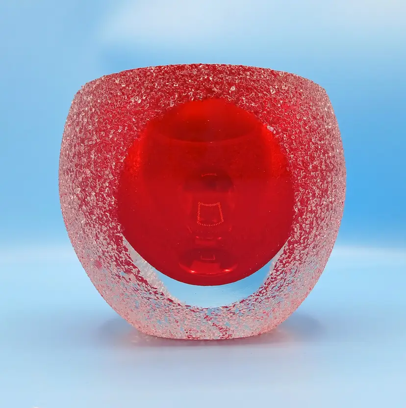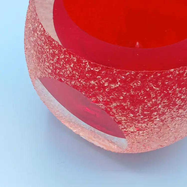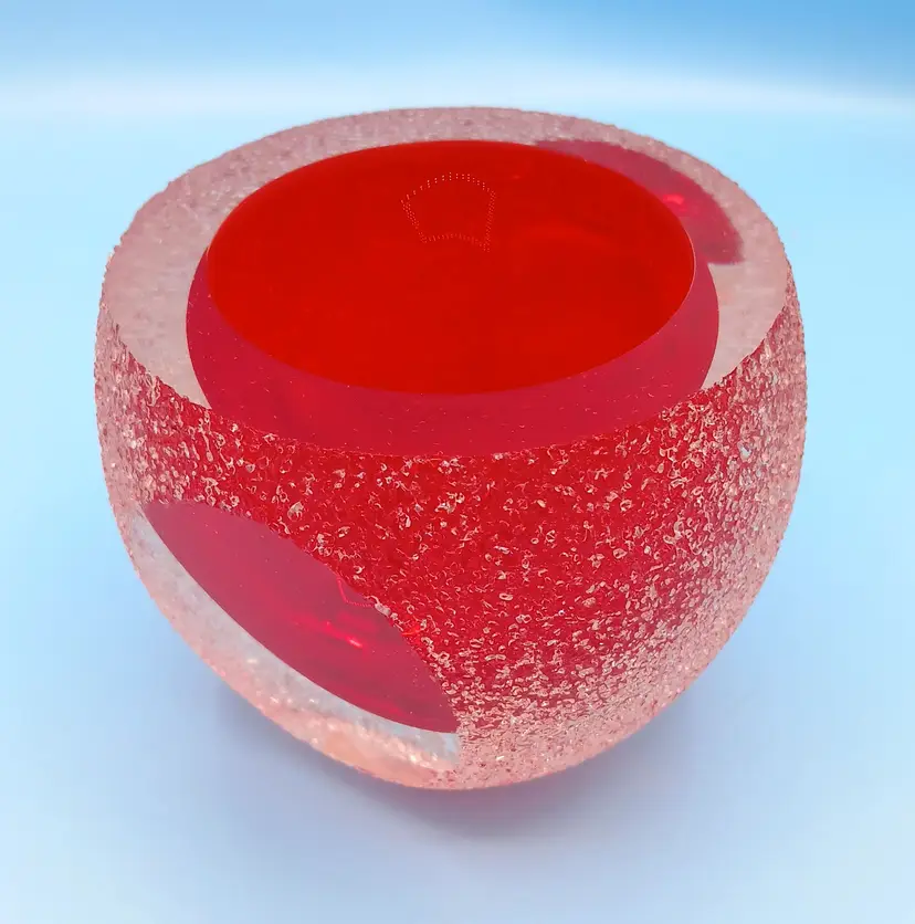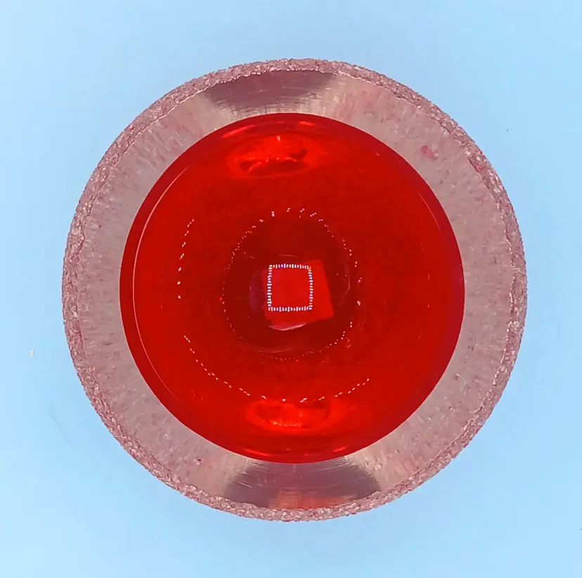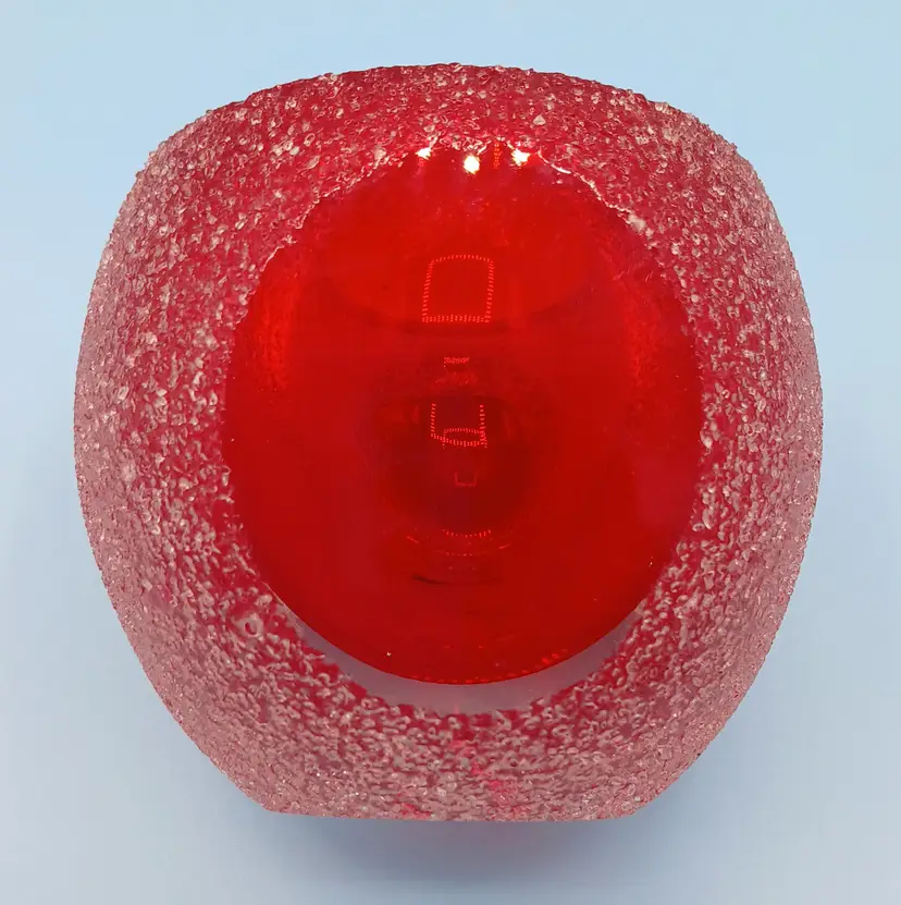 3.5" X 3.5" No damage noted. Beautiful red geode cut away textured glass. One side has a bit of a smear on the glass. Please refer to photos. Thanks for looking!