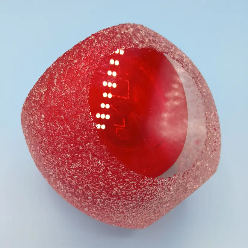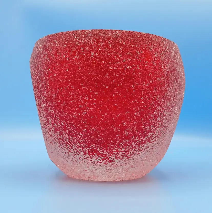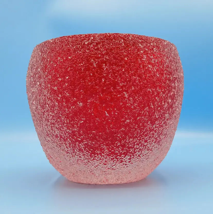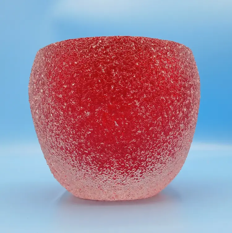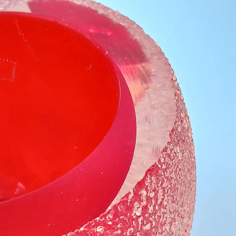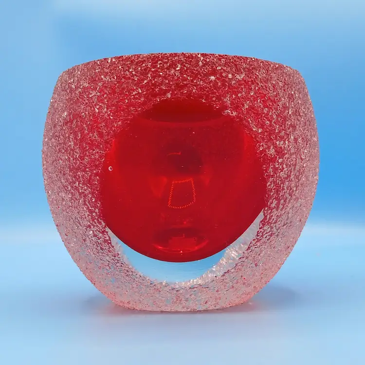 3.5" X 3.5" No damage noted. Beautiful red geode cut away textured glass. One side has a bit of a smear on the glass. Please refer to photos. Thanks for looking!
