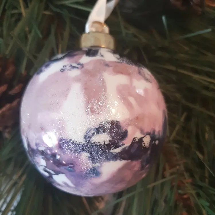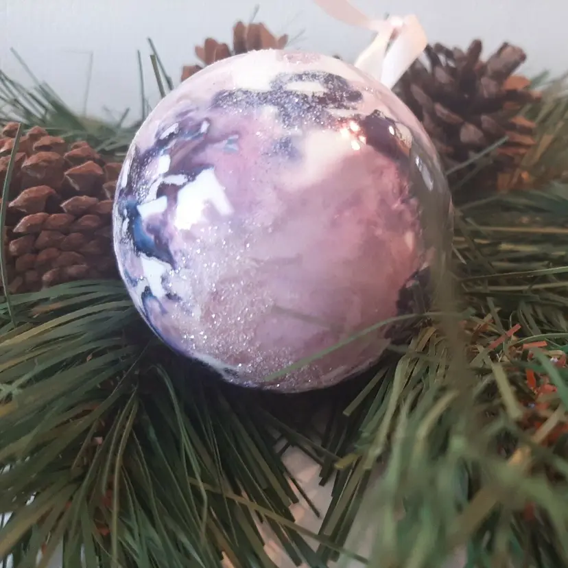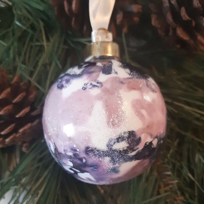 – Features: Handmade – Number of Items: 1 – Pattern: Tie Dye – Time Period Manufactured: 1990-1999 – Subject: Balls – Collection: Ornaments – Occasion: Christmas – Vintage: Yes – Country/Region of Manufacture: United States – Material: Glass, Glitter – Shape: Round – Brand: Unbranded – Antique: No – Color: Purple – Set Includes: Ornament – Theme: Holiday – Type: Ornament