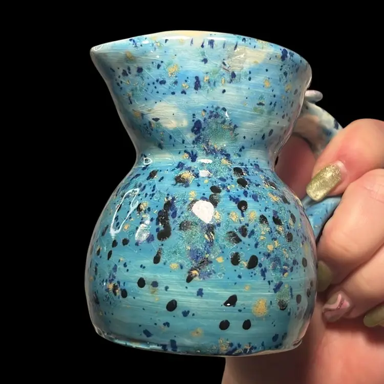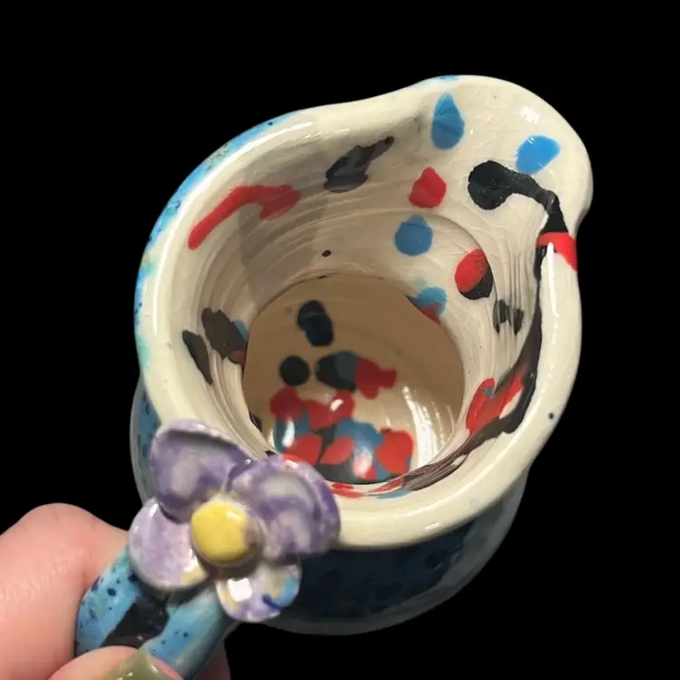Not for food/liquid use due to crazing. No chips or cracks. Approx: 3.5” h x 35” w with handle
