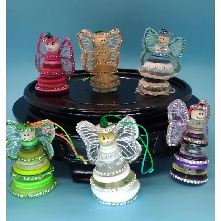 A charming colection of handmade button angel ornaments, each with unique colors and sparkling wings. Perfect for adding a whimsical touch to your tree, decor, gift toppers or just as a thoughtful gift. Crafted with care and creativity.