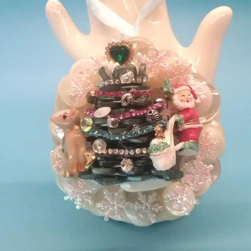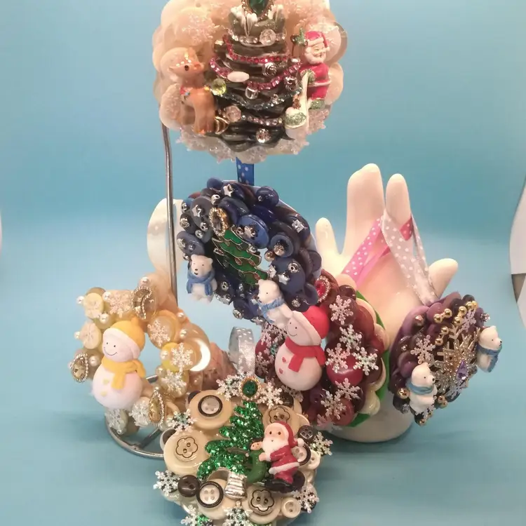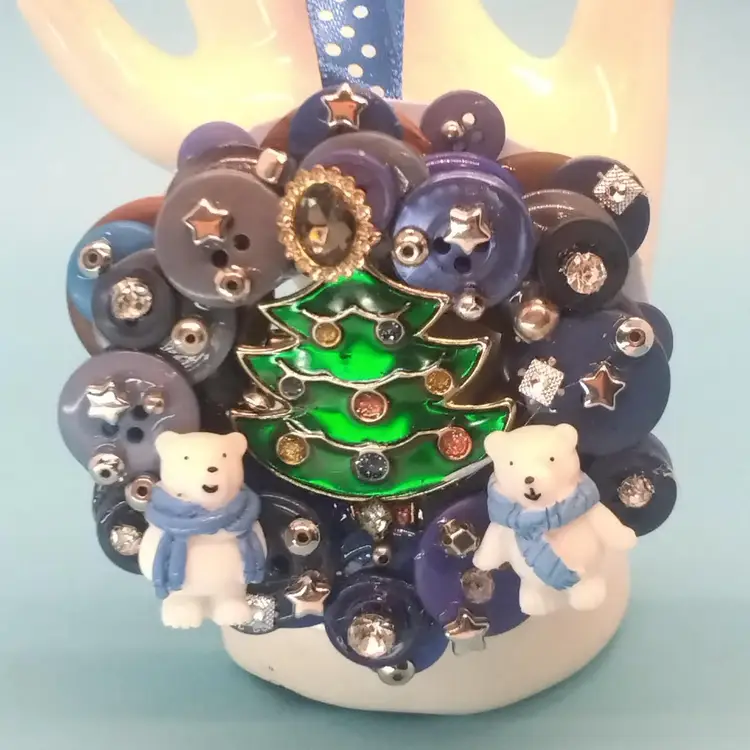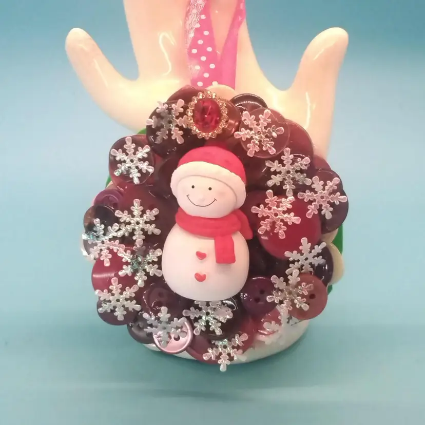 These charming handmade Christmas ornaments feature a delightful mix of buttons, snowmen, and festive decorations. Perfect for adding a unique touch to your holiday decor. Each piece is crafted with care and creativity.
