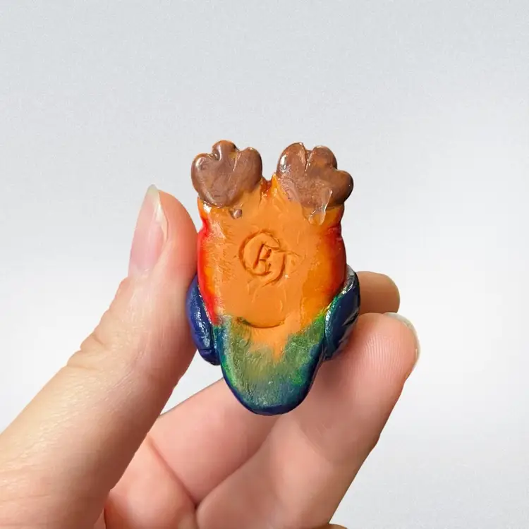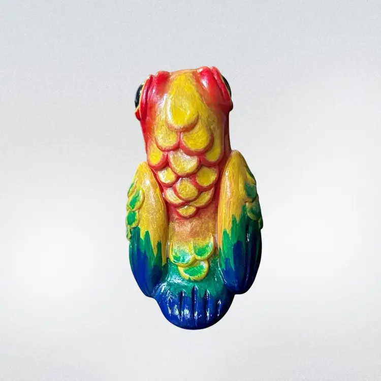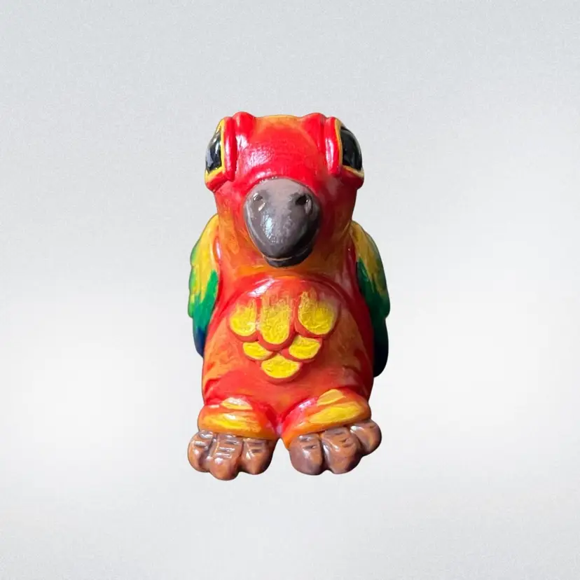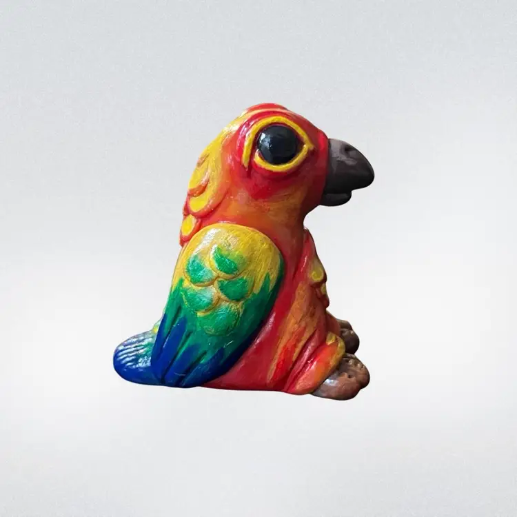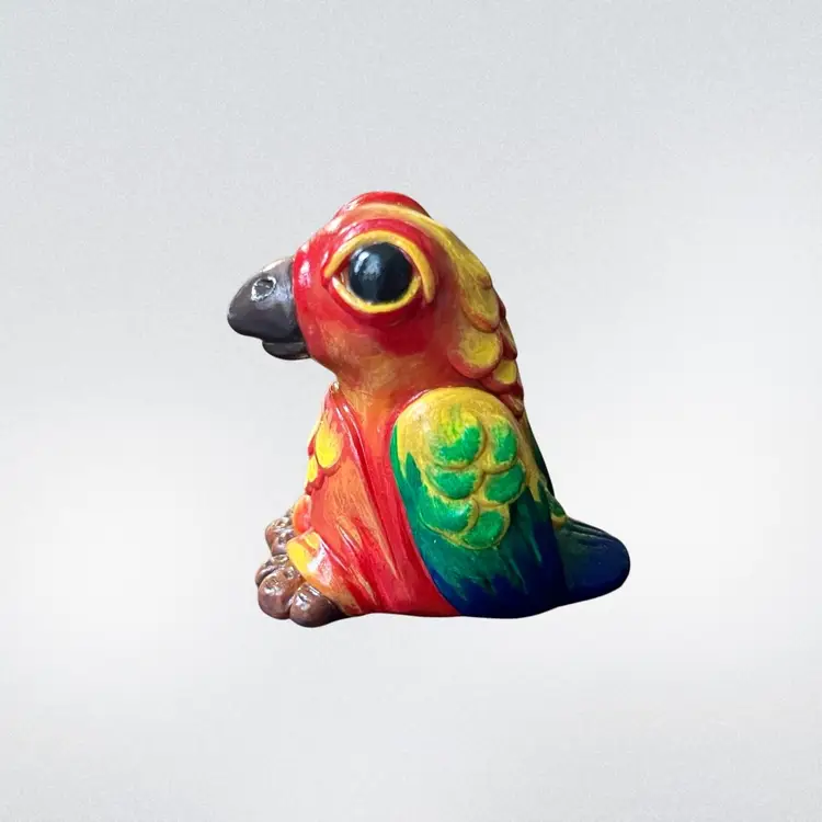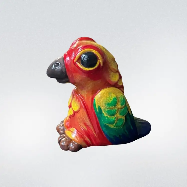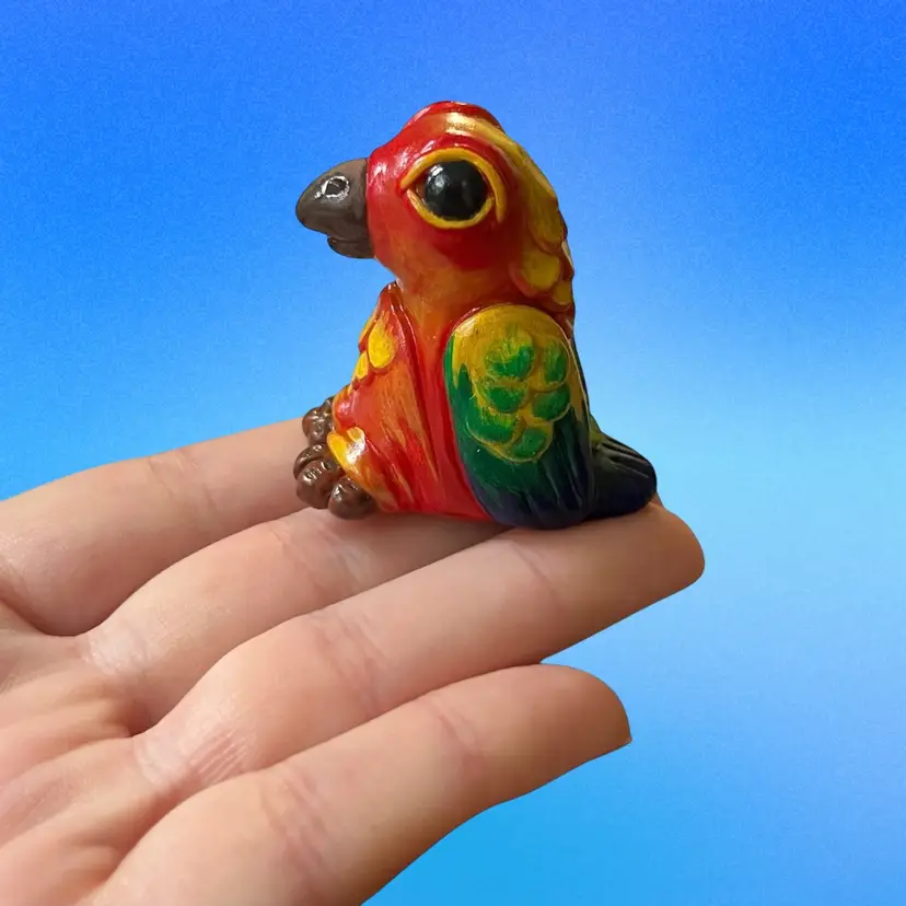 Approximately 1.75β x 1.5β x 1β. Meet Marty the colorful Sun Conure!π¦ This is hand sculpted by me out of polymer clay, hand painted with acrylic paint, and then coated with an archival acrylic gloss varnish. This protects it from dirt, dust, and UV and is water resistant but itβs not waterproof so please be careful to not rub with water or submerge.