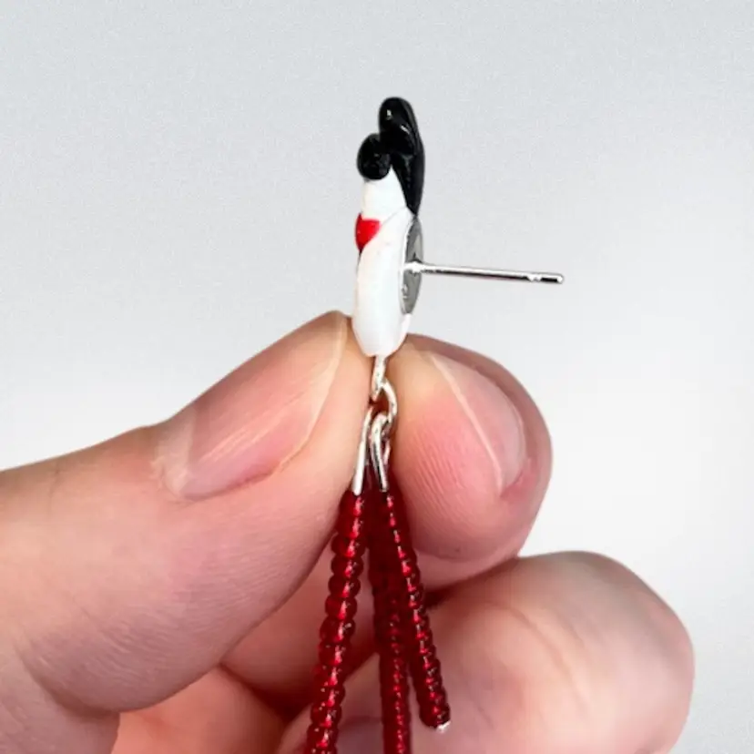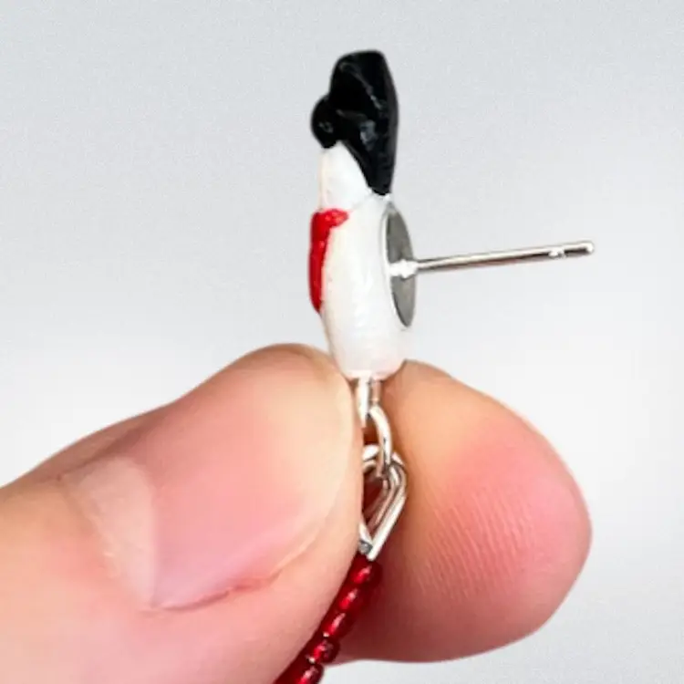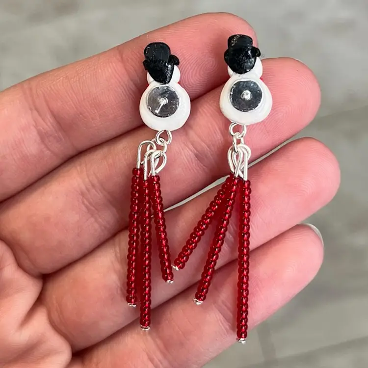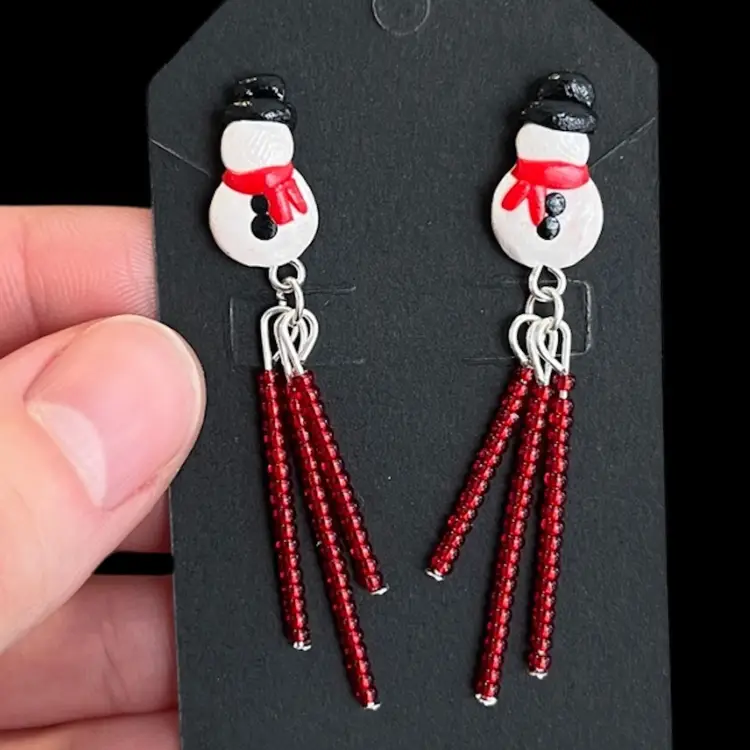 Approximately 2.25” long. From the post to the bottom they’re approximately 1.75” long. This is a hand sculptured polymer clay item, so there are "imperfections" like faint fingerprints and lines in the clay. The earring backs have been attached with locktight gel super glue and the polymer clay portion has been painted with a thin layer of gloss varnish.
