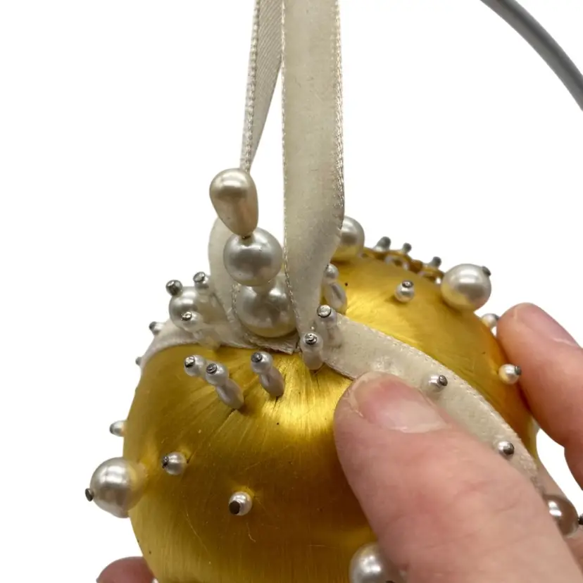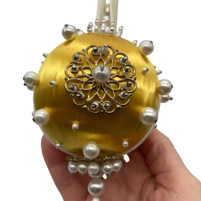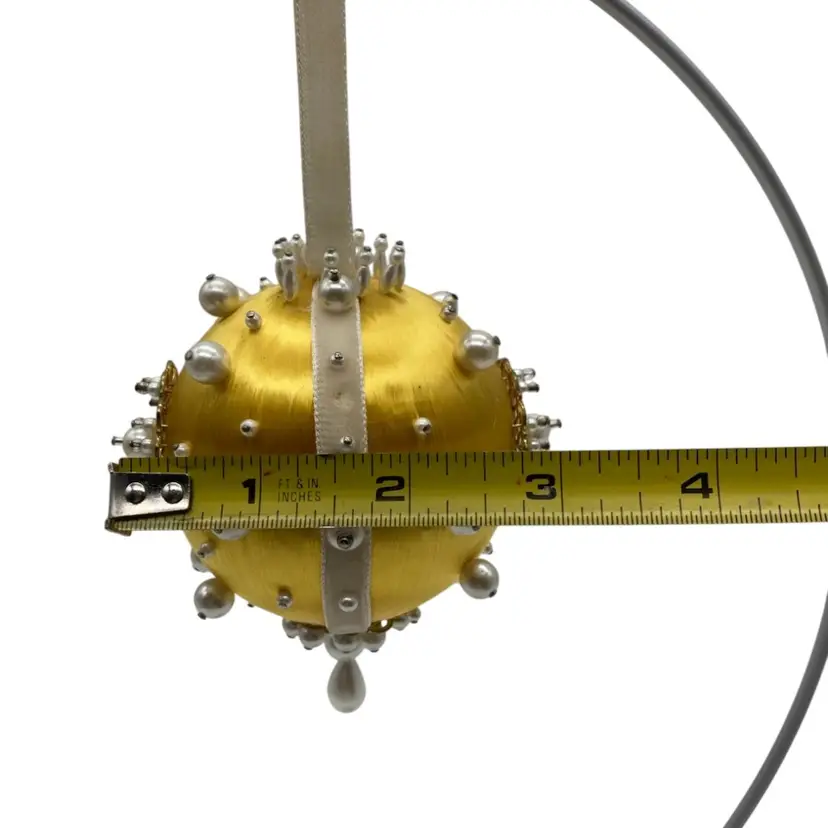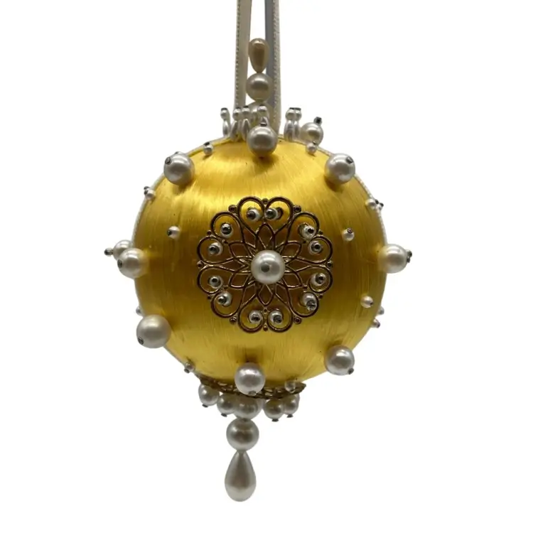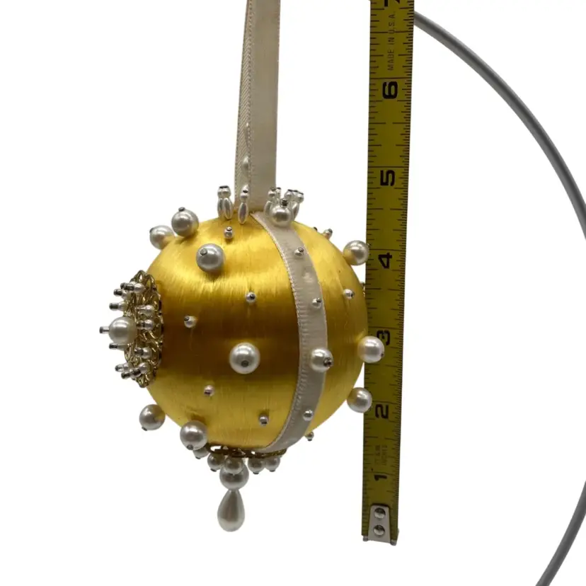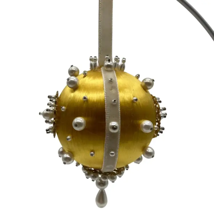 Made on a 4” golden yellow satin ball with a 7” drop.