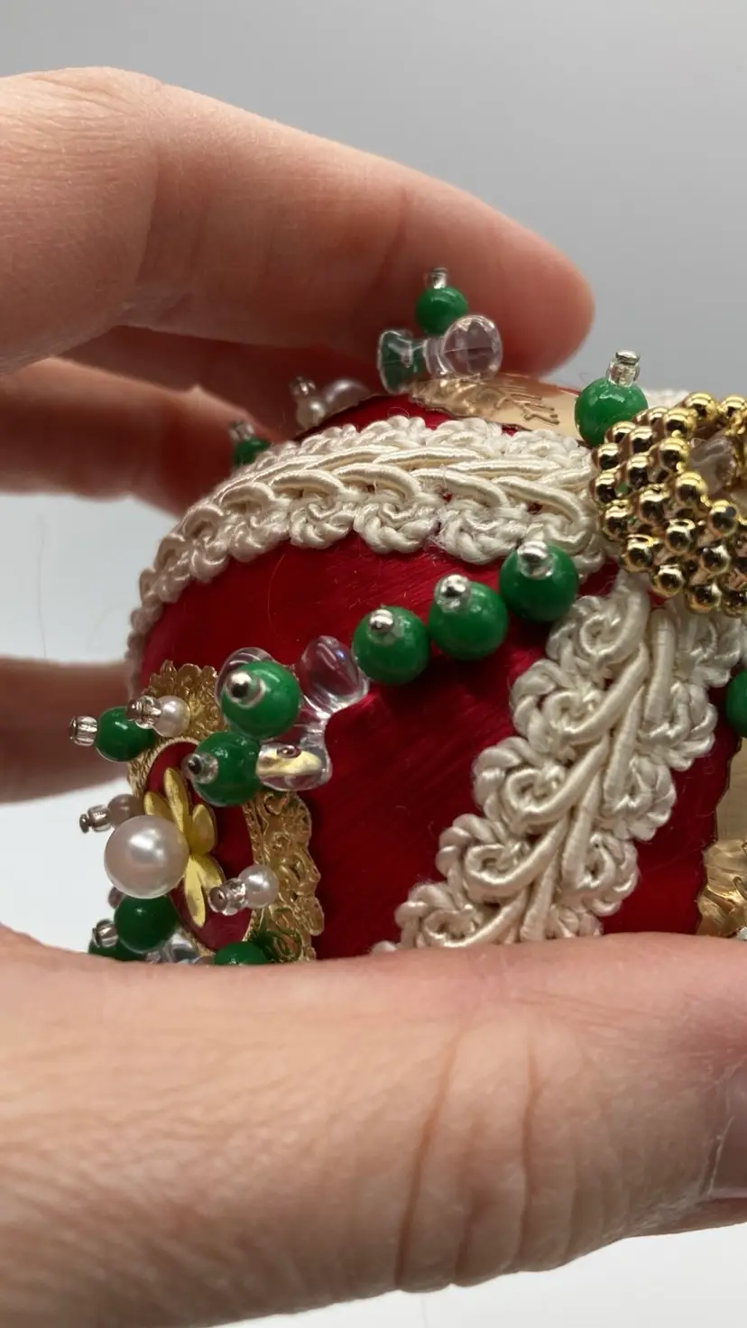 Made on a 2.5 red satin ball with an 6” drop.