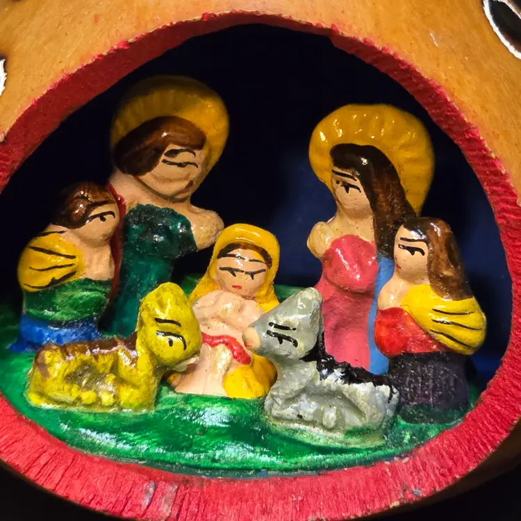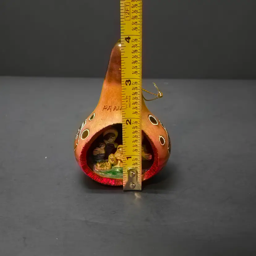 Hand carved and painted. Has a few scratches and tiny cracking in the stem.