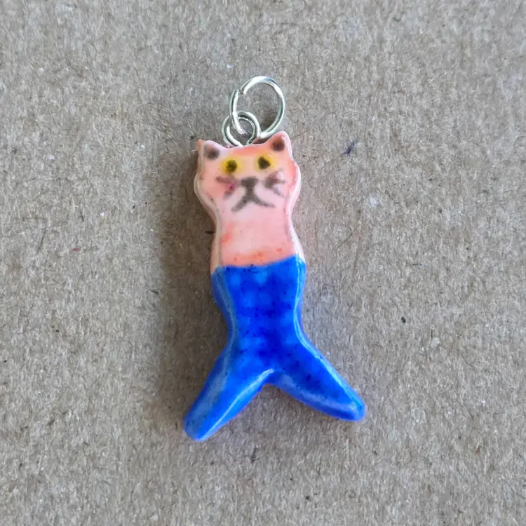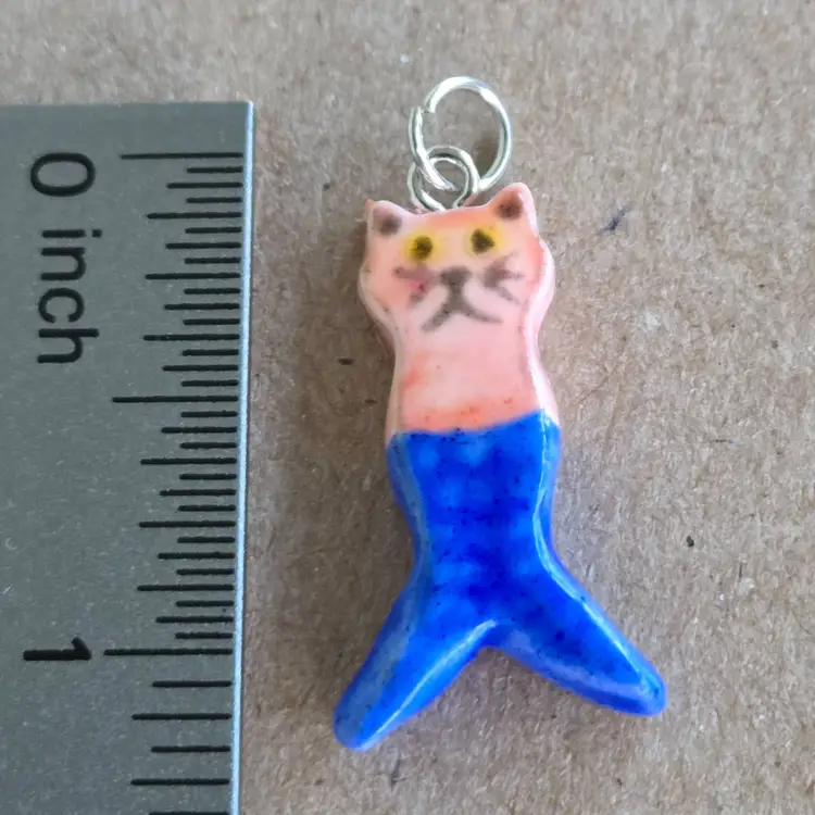 Handmade charm made from polymer clay, coated with polyurethane. An eye screw and jump ring is attached to slide onto your own chain.