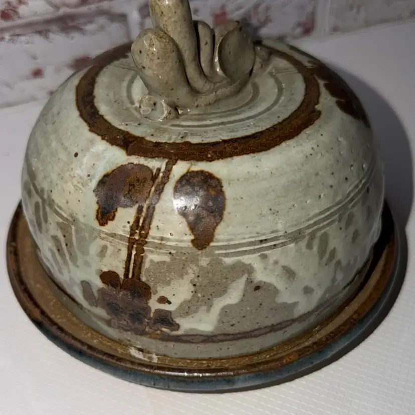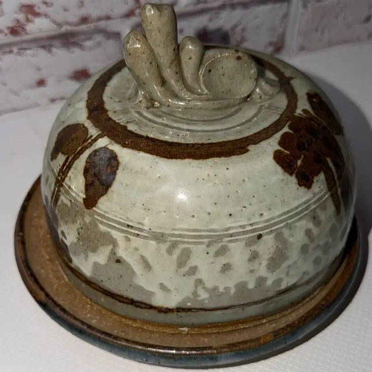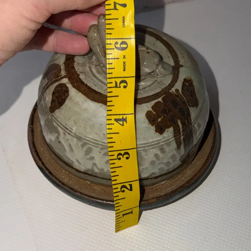 This type of dish is designed to keep butter soft and spreadable at room temperature. Almost 7” tall & no chipping or flea-bites