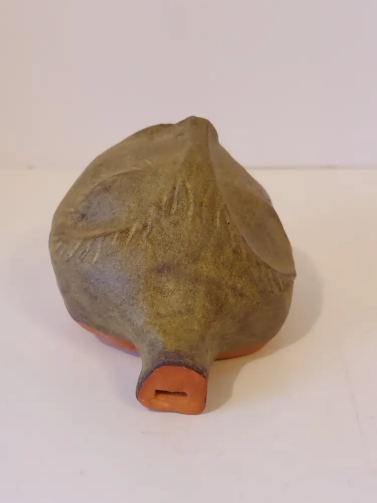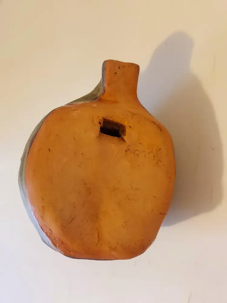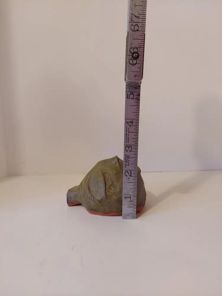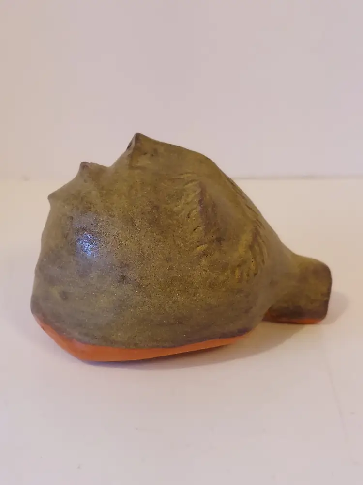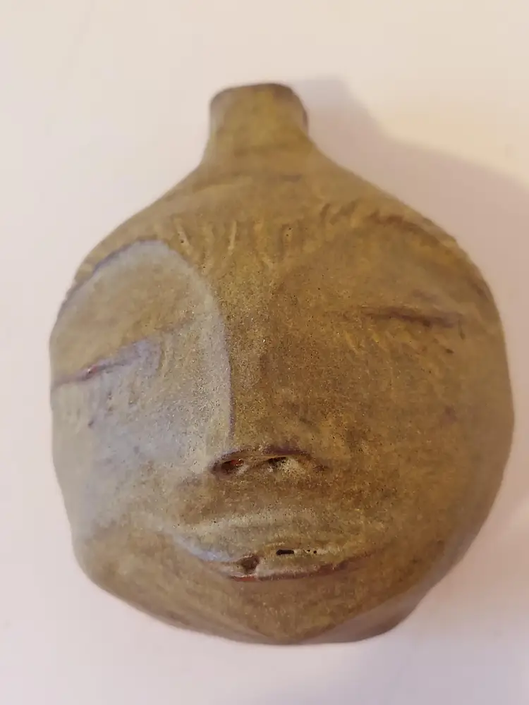 This handmade ceramic face whistle measures approximately 3×4×2.75 inches and has no markings.