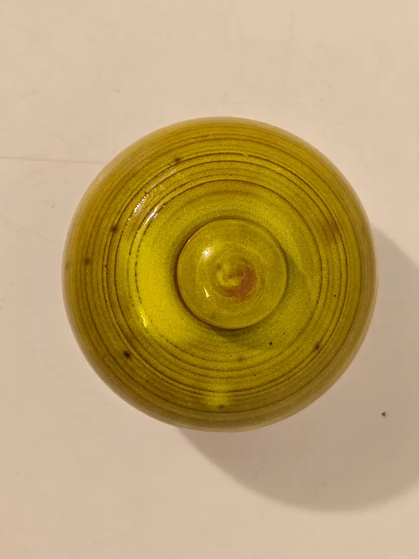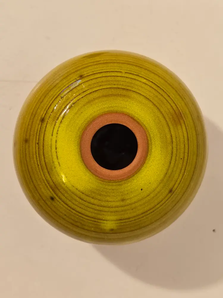This eye catching piece measures approximately 2.8×2.8 inches and is signed by the artist. The stopper does not sit snug in the opening, it just sits on top.