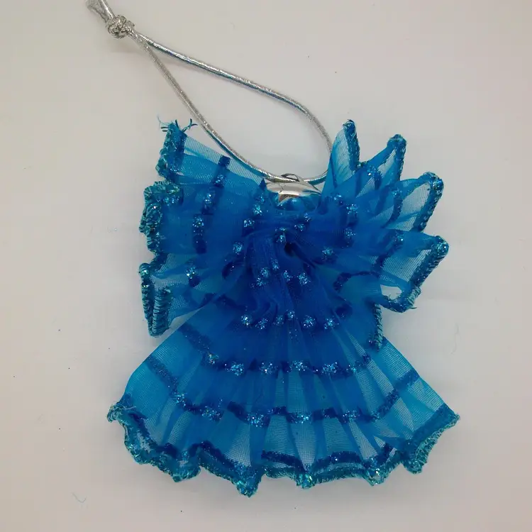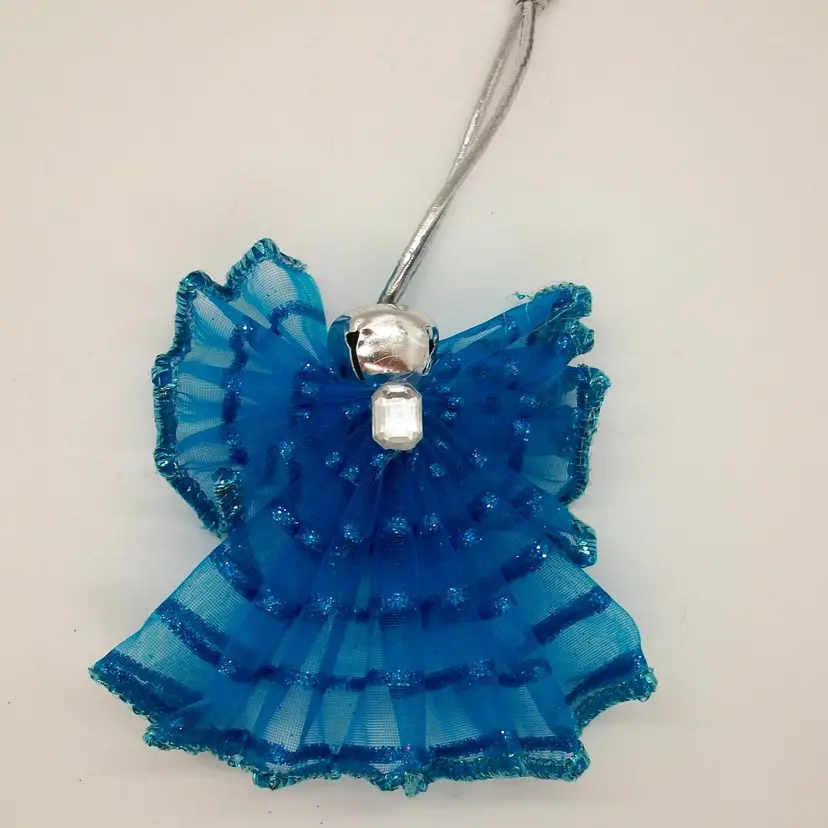 Add a touch of handmade charm to your holiday decor with this set of 3 unique Christmas angel ornaments. Each angel features a distinct design with colorful fabric ribbon and intricate details, perfect for your tree or as a thoughtful gift.