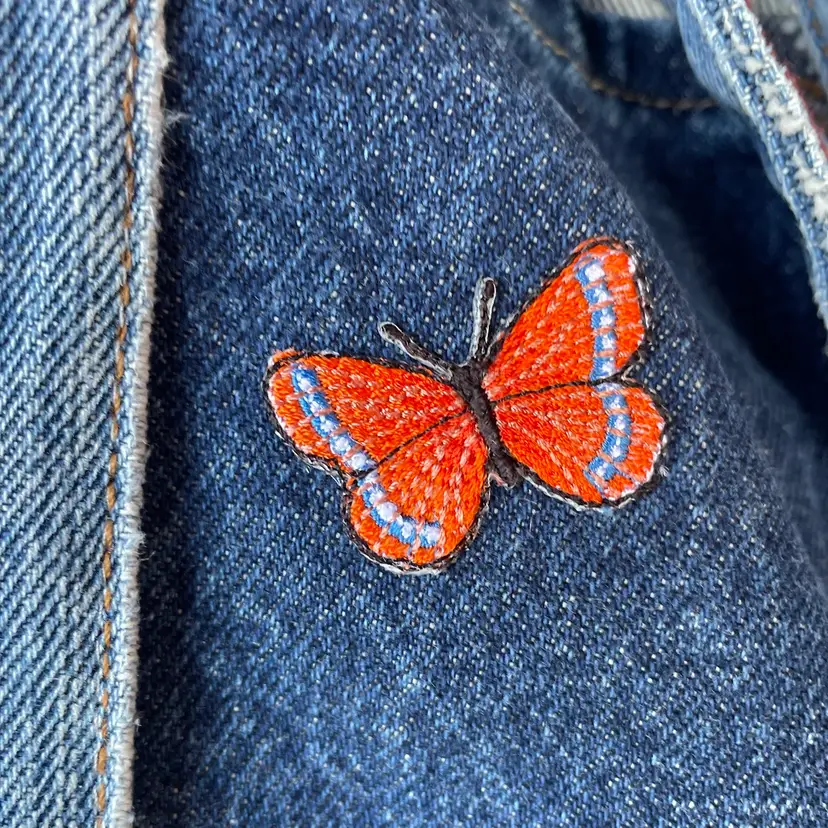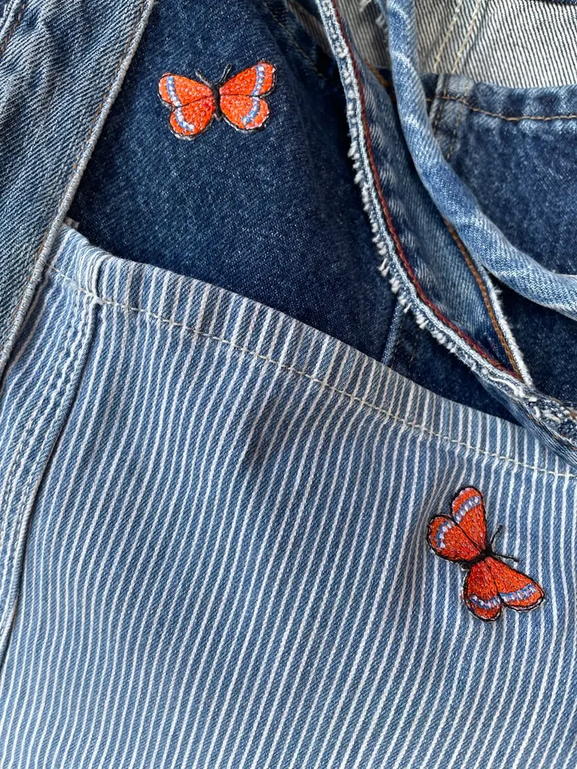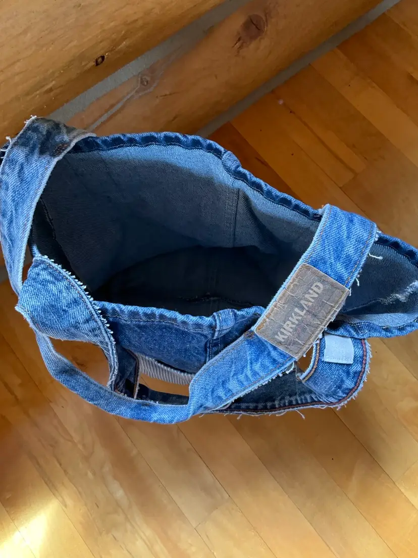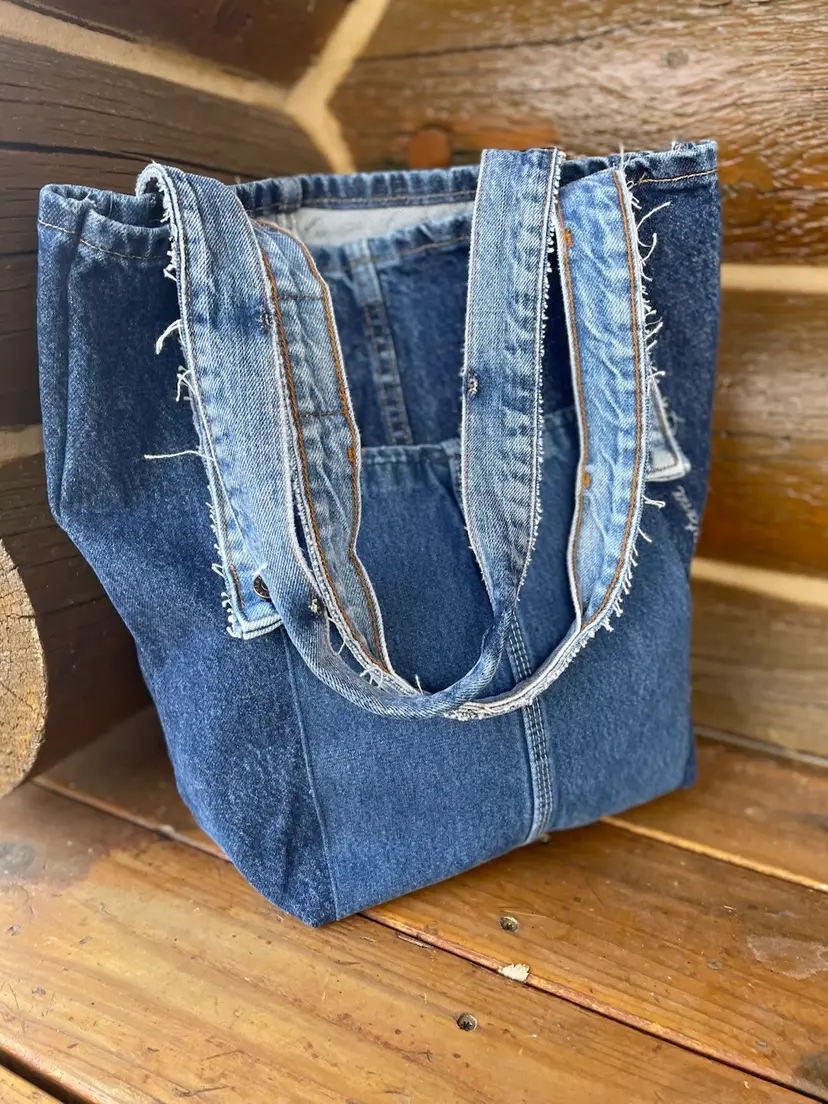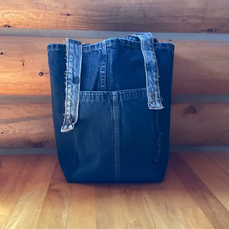 Denim tote with butterfly appliqué detail made from jeans - a unique recycle. It’s soft denim, like your favorite pair of jeans, is bound to be a favorite grab-and-go tote.