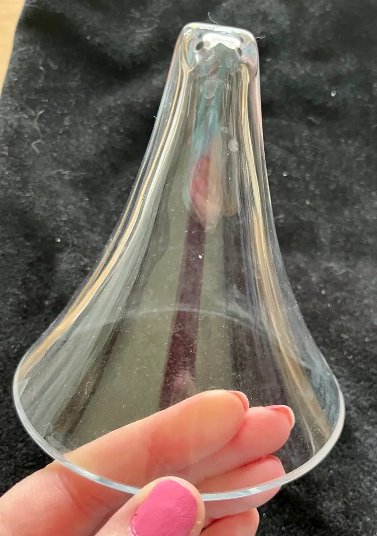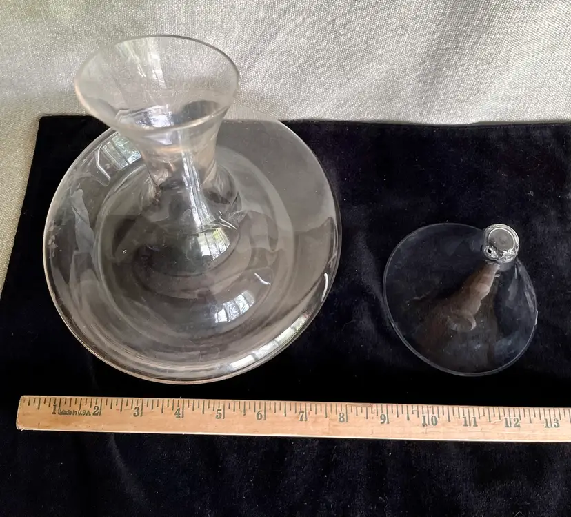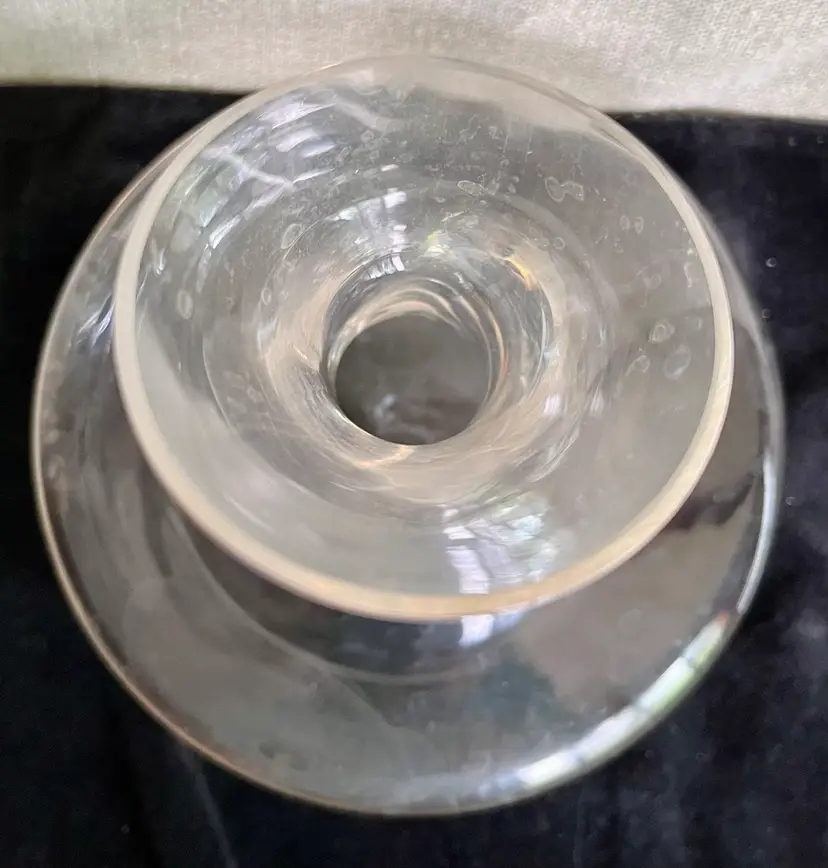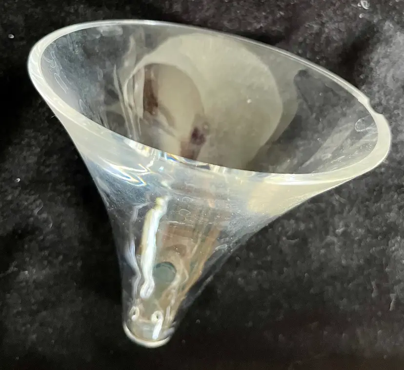 Please look at all the photos prior to deciding to make a purchase. This is a pre-owned item with rough edge on funnel from a chip. Buyer is strongly encouraged to review the photos and decide for themselves its condition as my interpretation may not align with yours.