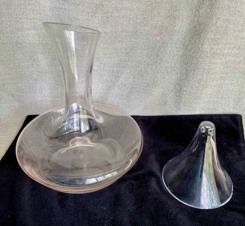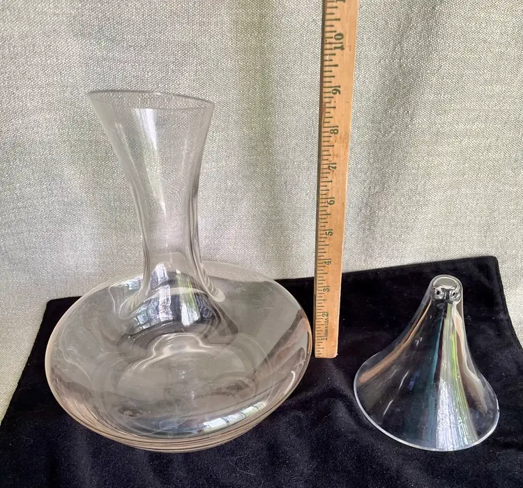 The Denizli Handmade Wine Decanter is a stylish and practical addition to any home bar or dining table. Made of clear glass with a contemporary design, this decanter features a concave bottom and a slanted spout for easy pouring. The set includes a glass funnel with two holes (note: rough edge), making it convenient for filling the decanter with your favorite wine. Hand-blown in Turkey without any seams, this decanter exudes quality craftsmanship and elegance, perfect for all occasions. Enjoy your favorite wines in style with this unique Denizli wine decanter.