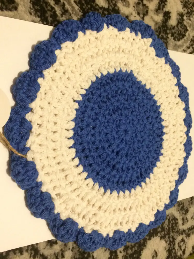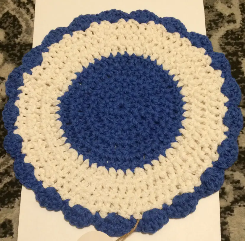 Blue and White 12" Round No condition issues! NEW to District? Enter code Michel42 into your wallet prior to your first ever purchase and save $5 off any $10 or more! Give me a Follow and I WILL Follow you back! :)