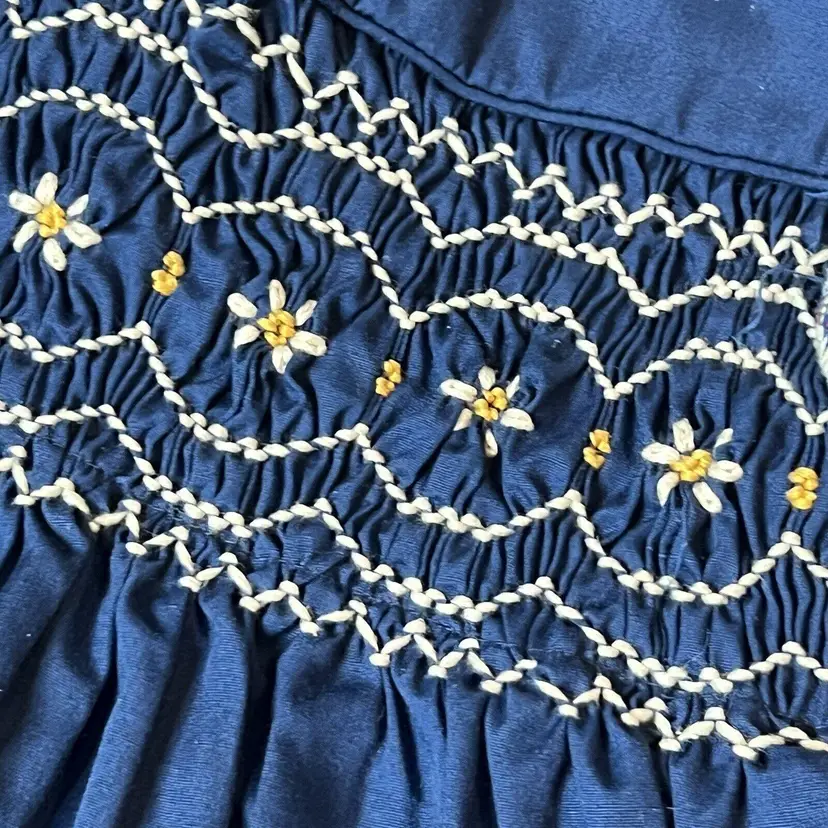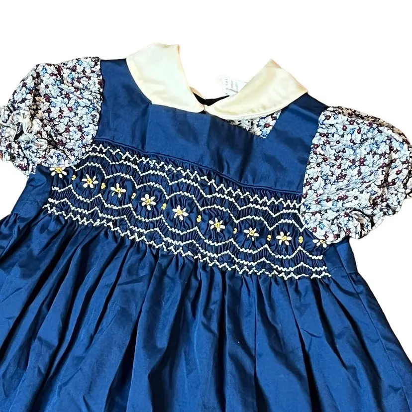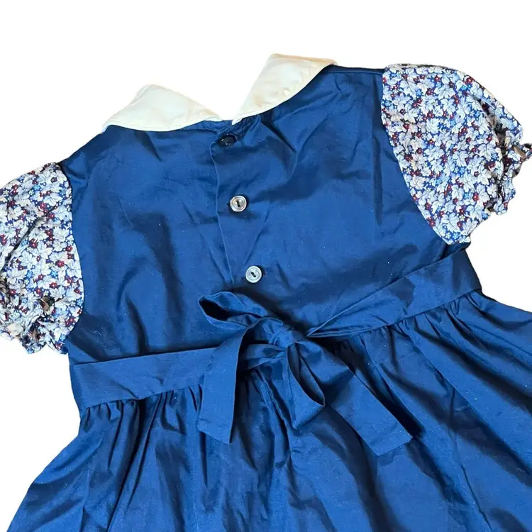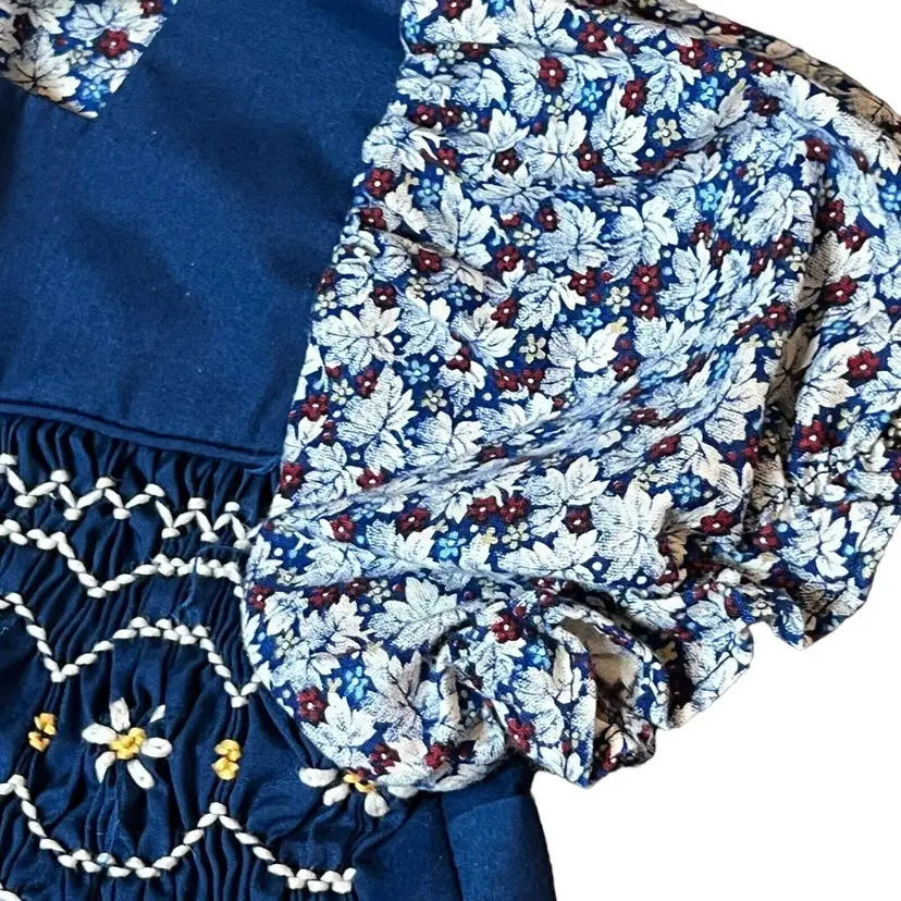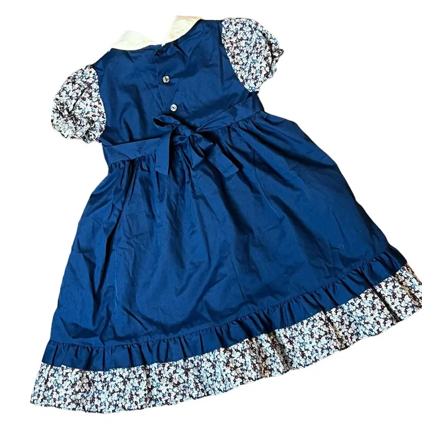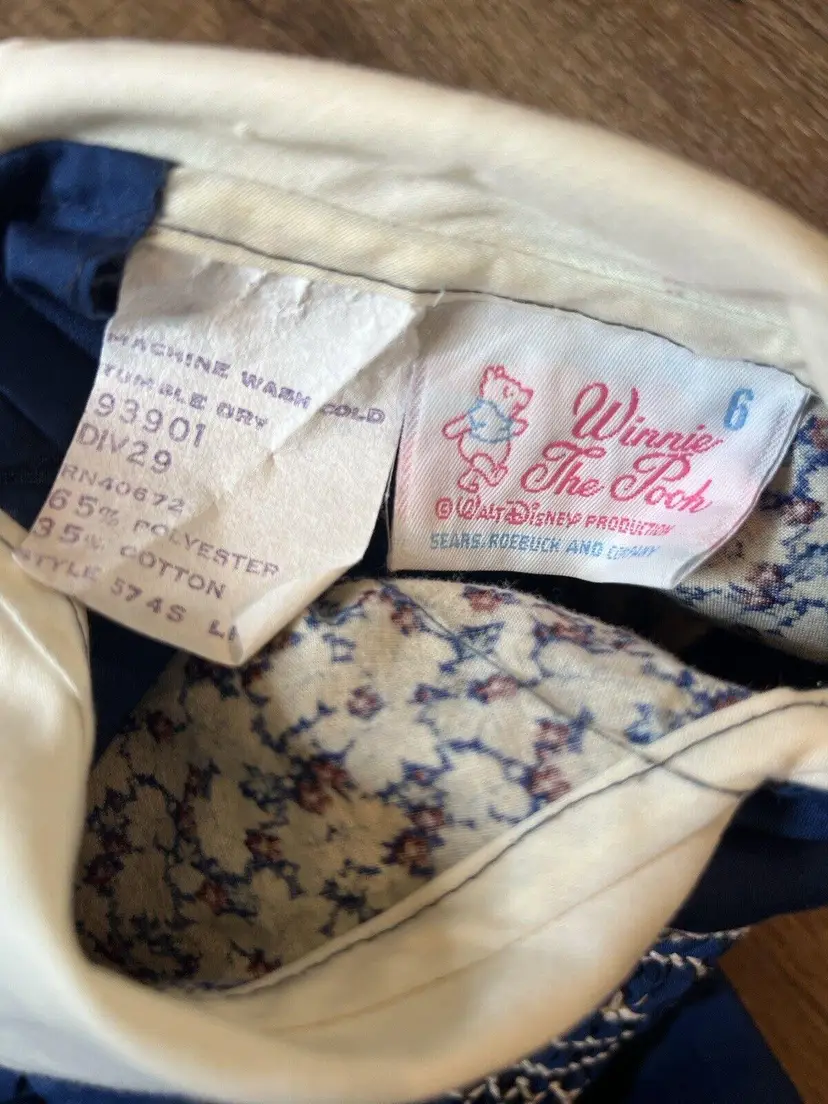 Vtg Sears Winnie The Pooh Dress Girls Size 6 Blue White Ruffle Floral 1980s